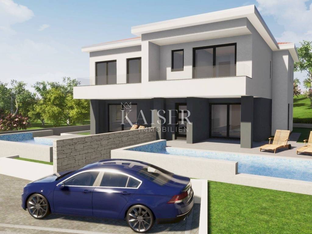 Kaiser Immobilien presents a modern semi-detached house with a total area of 127.89 m² with a swimming pool, located in a sought-after location in Malinska, only 900 meters from the sea and 700 meters from the town center. This property perfectly combines contemporary design, functional layout and a pleasant Mediterranean lifestyle.
