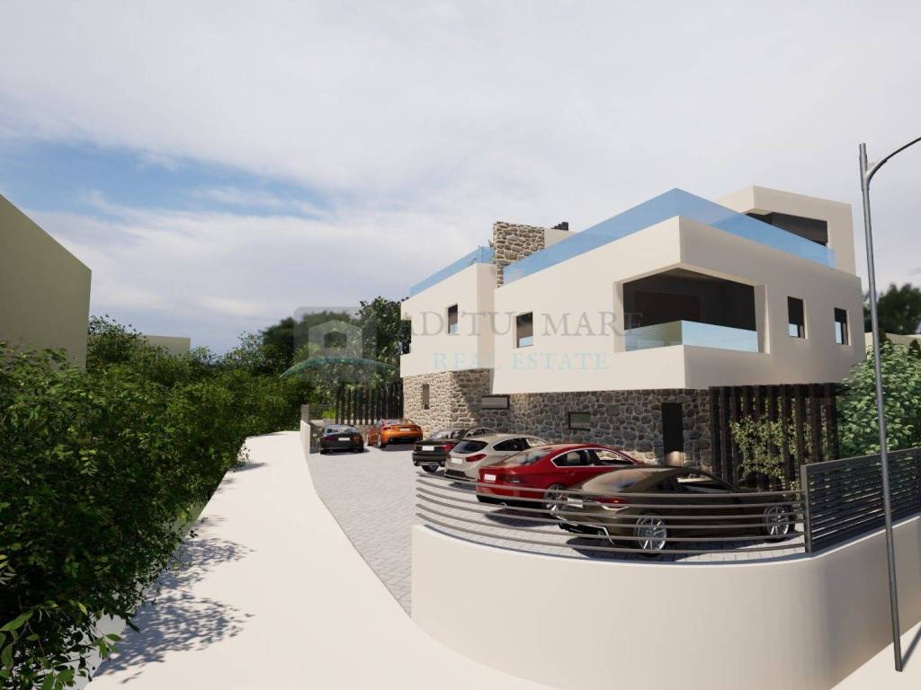 Na prodaju je moderan dvoetažni stan (S4) smješten na 1. katu stambene zgrade s ukupno četiri stambene jedinice, na izuzetnoj i mirnoj lokaciji u Vodicama.