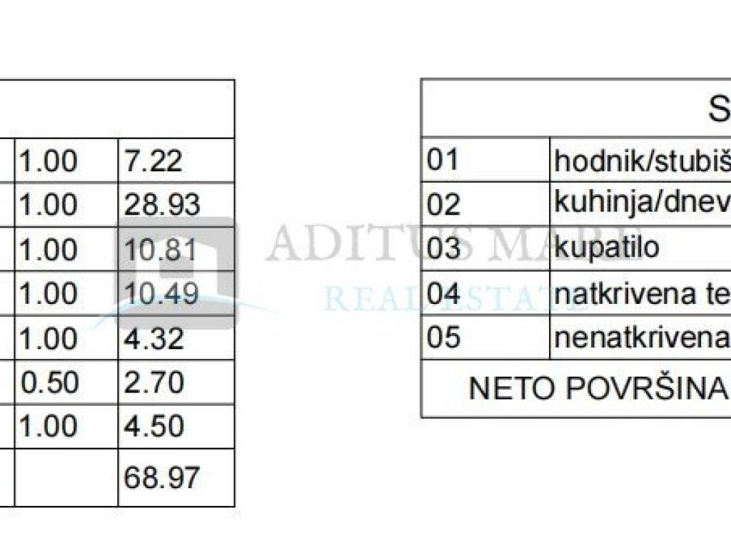 Stan se proteže na dvije etaže te ima ukupnu bruto površinu 137,52 m, dok korisna neto površina iznosi cca 101,48 m.