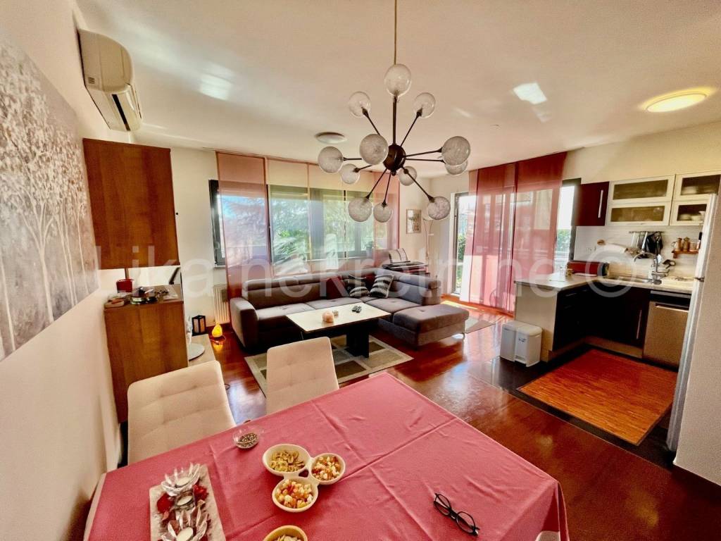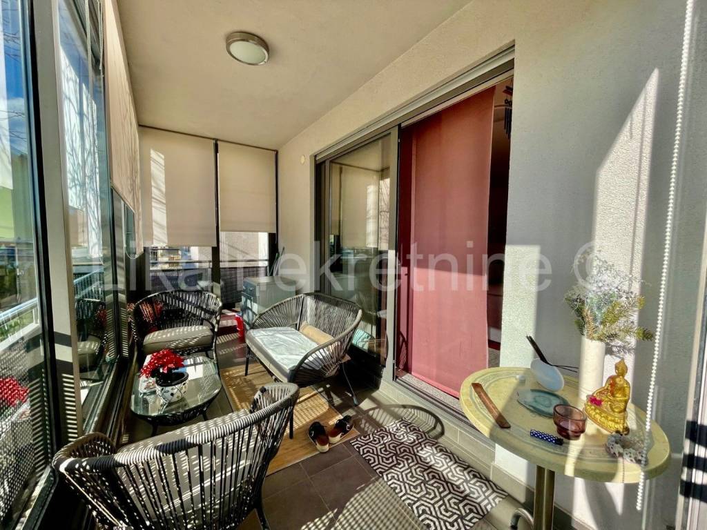Molim nazvati na 091 36 36 366. Prodaje se prekrasan stan s vrtom. Stan se nalazi u visokom prizemlju novije održavane vrlo kvalitetno izgrađene zgrade a pripadaju mu i dva parkirna mjesta. Stan se sastoji od ulaznog prostora, dvije spavaće sobe, kupaone sa kadom, open space dnevnog boravka sa kuhinjom i blagovaonom. Iz dnevnog boravka izlazi se na vrlo lijep zimski vrt okružen okučnicom od 150m2 na kojoj je smještena vrtna kućica i veliki stol za ugodan boravak na otvorenom. Stanu pripada veliko spremište s provedenom strujom tako da se u spremište mogu staviti dodatna škrinja ili frižider. Stan je klimatiziran, grijanje plinsko etažno a sva brojila struje, vode, plina su odvojena. Ukoliko želite kvalitetan stan sa svim prednostima stana a ujedno želite imati svoju malu zelenu oazu ovo je nekretnina za vas. Ukoliko trebate više informacija o nekretnini, želite izvršiti uvid u vlasničku dokumentaciju ili dogovoriti trazgledavanje nekretnine molim nazovite 091 36 36 366.