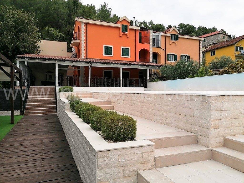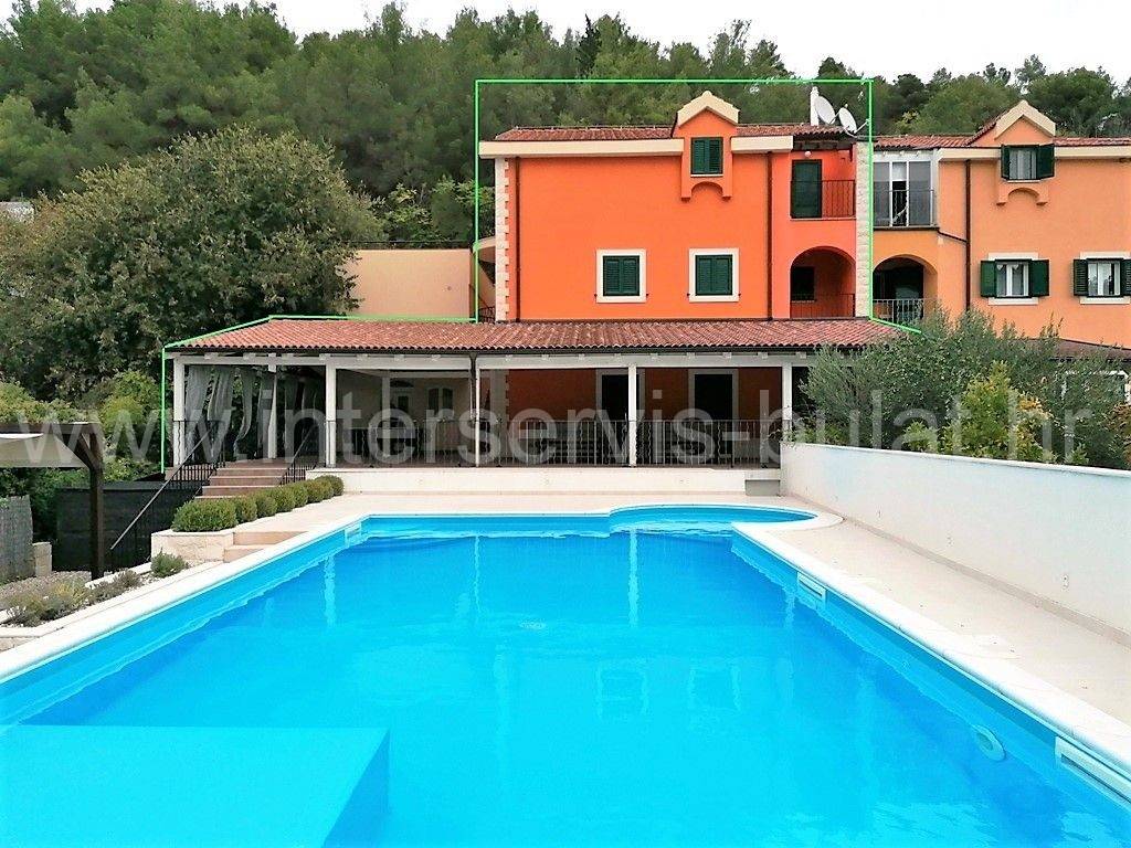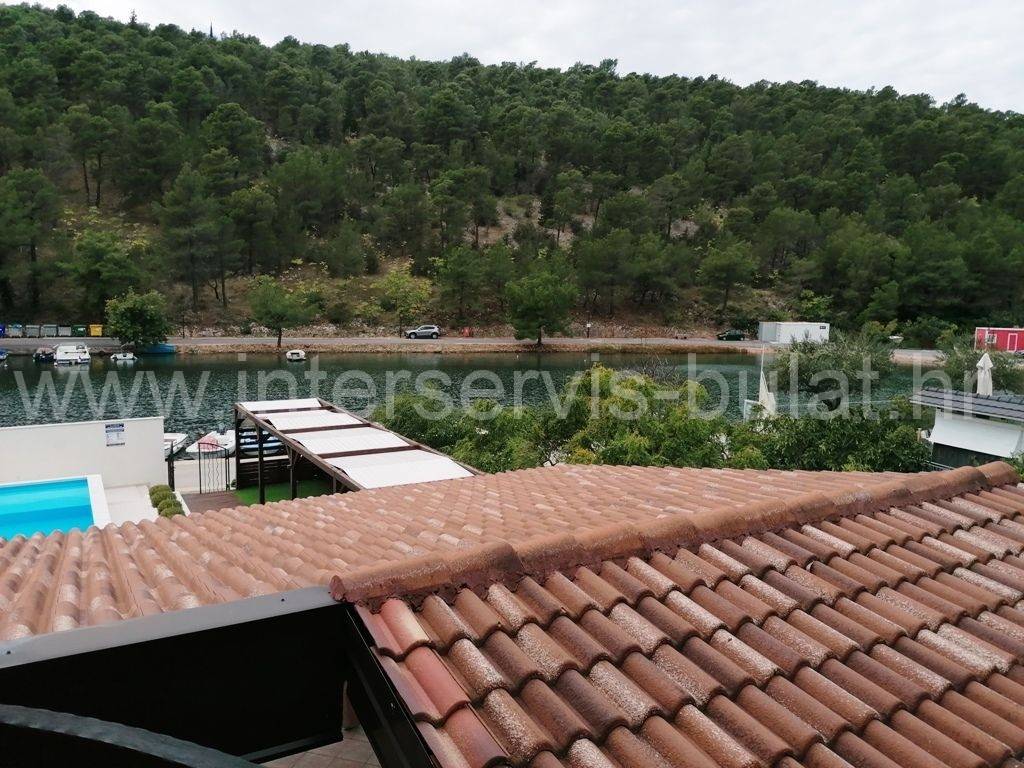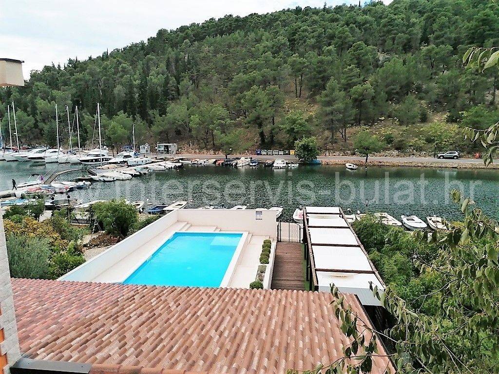 .::: House with pool in the 1st row :::. In the center of Skradin, 1st row to the Marina in a quiet location, there is a residential and commercial building. It consists of a basement, ground floor and atticwith3 residential units and a business space for catering. In the basementthereis a business space / tavern of 77.66sqm which consists of several separate rooms - Kitchens 27sqm, wine storage 11sqm, prosciutto storage 11sqm, barbecue preparation 18sqm, hallway, sauna, two showers and toilet. In front of it there is a large covered terrace overlooking the pool. The ground floor has two one-bedroom apartments of 38sqm with balconies. Bothare decorated and habitable. In the atticthere is a habitable apartment of 81.32sqm with two bedrooms and two balconies. The house has access from two sides and a large parking area behind. It is surrounded by greenery, nature and fresh clean air, spared from city crowds and traffic noise. Perfect location for vacation or housing. Tour of the property is available by prior arrangement and appointment booking (two days in advance). Please specify ID number of the property when contacting us. Looking forward to your call.