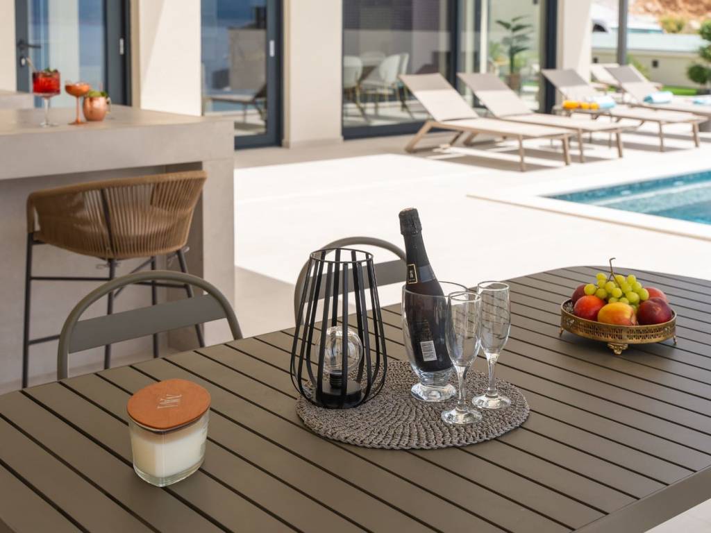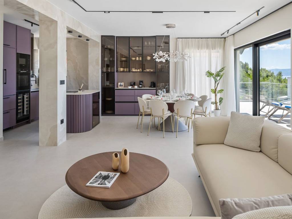 podstrana posredujemo u prodaji lux ville s bazenom i panoramskim pogledom, 4 sobe s kupatilima, kuhinja s blagavaonom i dnevnim boravkom s izlazom na terasu s bazenom i ljetnom kuhinjom, sauna, bazen, jacuzi, garaža, biljar itd. sve namješteno vrhunskim dizajnerskim namještajem cijena 1.680.000,00 eur ag provizija 2% dalmatinske nekretnine 091 2000 108