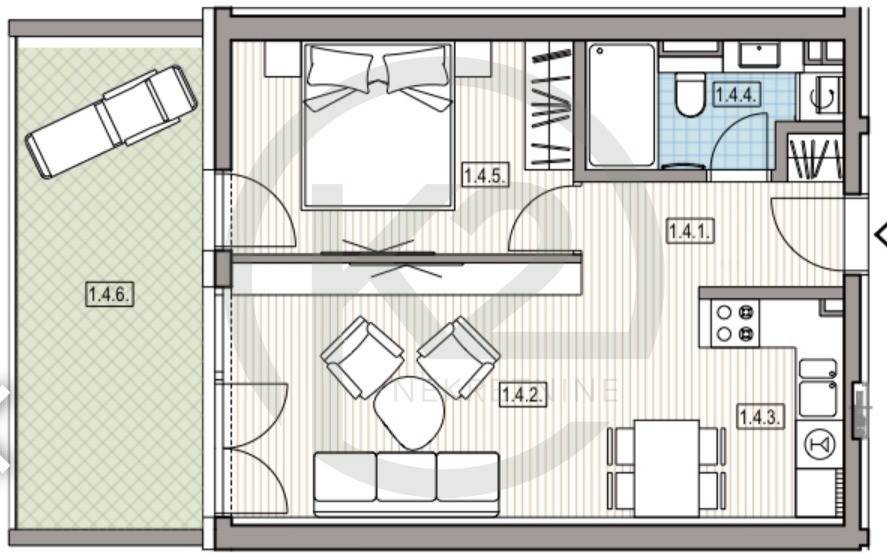 Stan ima 49,62 m2 obračunske površine, korisne površine 56,63 m2, a sastoji se od hodnika, DB+BL, kuhinja, kupaonica, spavaća soba i balkon.