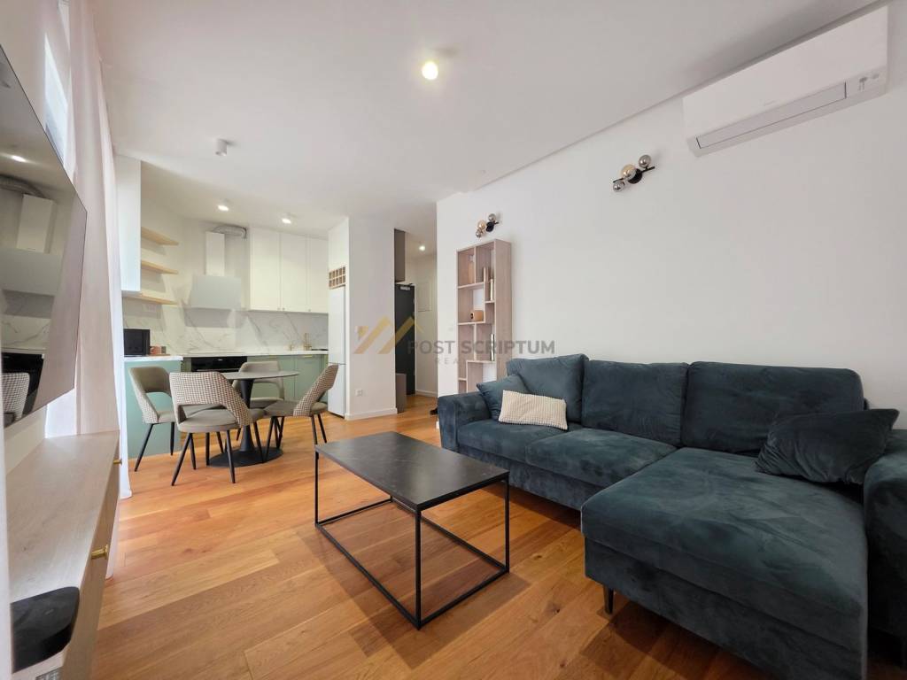 Ugodan, modernog i lijepog uređenja, opremljen svim namještajem i uređajima (TV, klima, perilica/sušilica rublja, perilica posuđa).