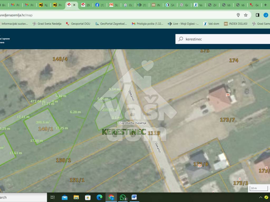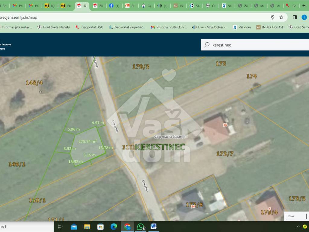 Na dobroj lokaciji u Kerestincu u Ulici Dekanići prodaje se građevinsko zemljište 3926 m2. Zemljište je široko cca 39 m uz cestu i sužava se do cca 32 m na dnu, a duljina je cca 110 m. Uz zemljište prolazi sva infrastruktura ( plin, voda , kanalizacija, struja). Na ovoj lokaciji se mogu graditi poluugrađene zgrade s po 8 stambenih jedinica ili višestambene jedinice ( kuće u nizu). Udaljenost škole vrtića, doma zdravlja je na 2 km od zemljišta ,besplatni javni prijevoz je na 500 m a, firma Rimac je udaljena svega 2 km. U blizini oko 1 km se nalazi prekrasno jezero i atletska staza, igrališta , te novosagrađeni park za pse. Iznad djela zemljišta prolazi manji dalekovod od kojeg se objekti moraju odmaknuti min 5 m. Ovo zemljište je prilika za investitore jer je idealne širine i dubine, a u blizini se nalazi više višestambenih objekata.
