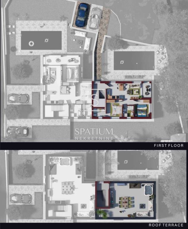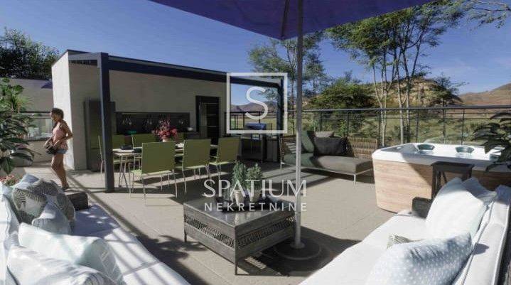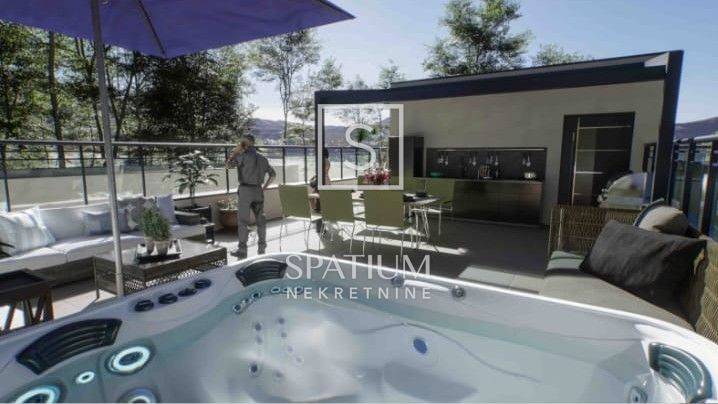 The apartment also includes a private rooftop terrace of 82.55 m² with an outdoor covered kitchen/dining area/barbecue and seating space, ideal for socializing and relaxation.