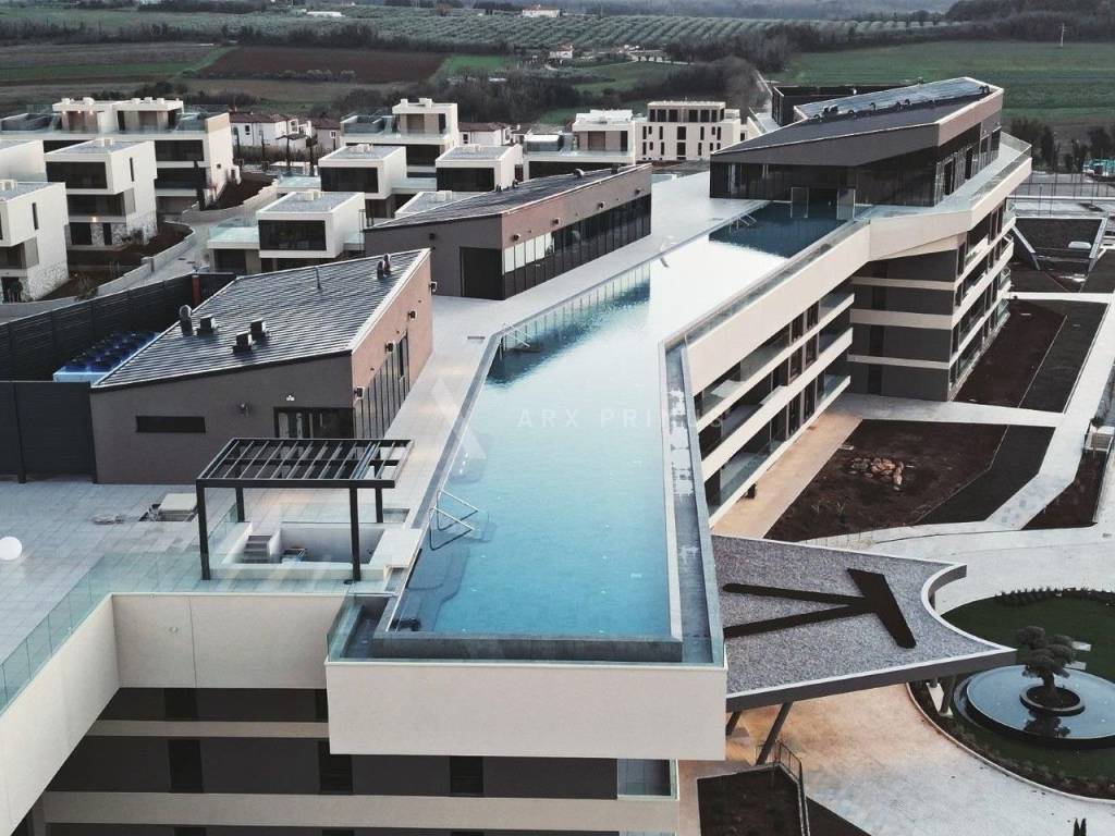 24h surveillance, Maintenance service, Concierge, Transfers (by road or sea) from Venice, Pula, Rijeka and Trieste, Caretaker on site, Electric buggy - free transfer to the nearby beach, Electric car charging station, Restaurants and Cafes by the pool, Gym and Sports facilities, Shopping on site, Luxury restaurant on the roof terrace of the aparthotel (main building), Wellness & SPA, Swimming pools with facilities for children, Kids playground, Babysitting service on request, Private chef service on request, Infinity pool 105m long on the roof terrace level (second largest in the world!), Indoor part of the pool at the level of the roof terrace, Private beach with bar, Pool at ground level (garden pool), Children's pool at ground level