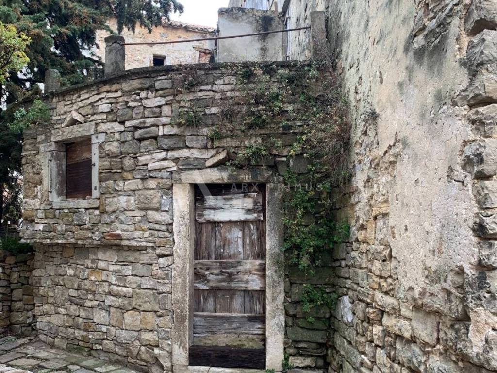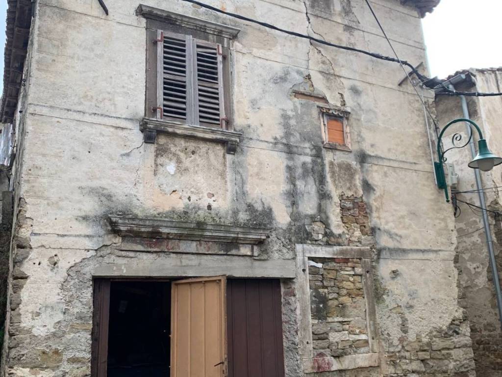 Large stone house in the center of the old town in Buje. The house consists of a garage on the ground floor and living space on the first floor and attic. Next to the house is a small stone house. Investment opportunity.