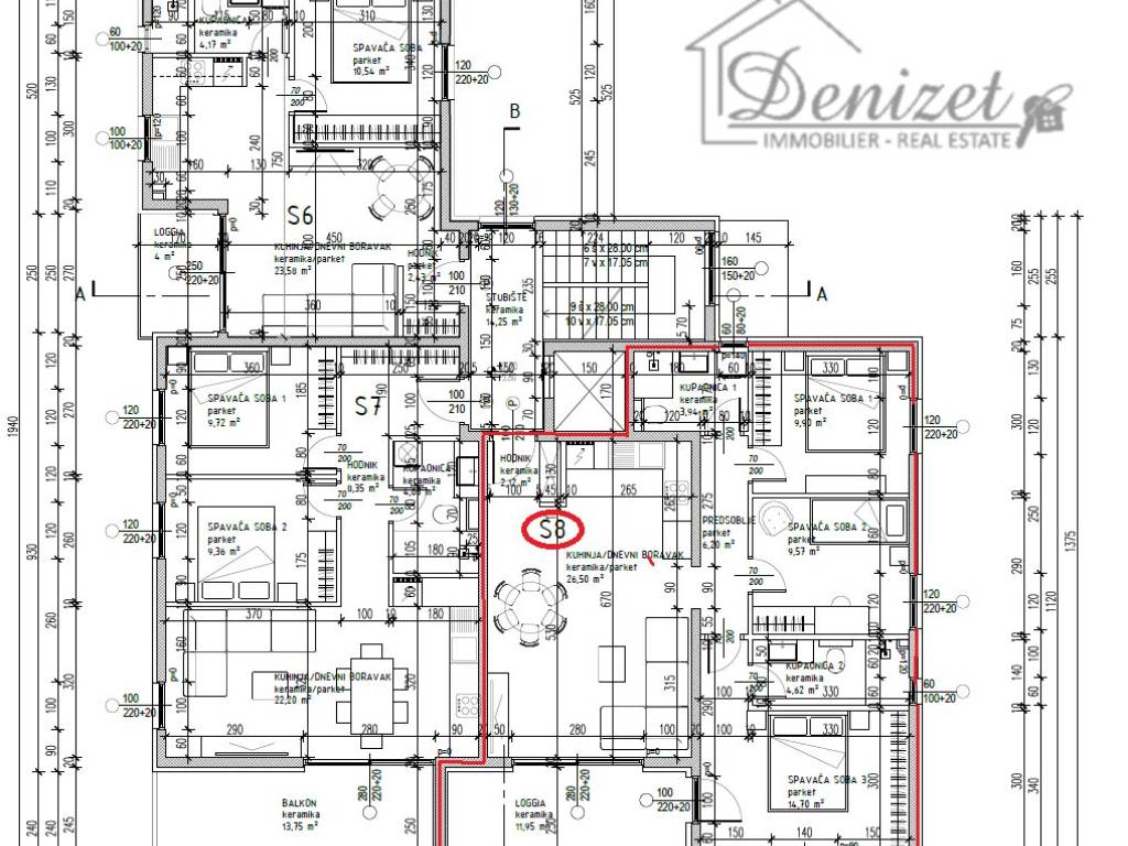 Apartment S8 – living area of 77.55 m² + loggia of 11.95 m² + parking space. Price: 320,000 €