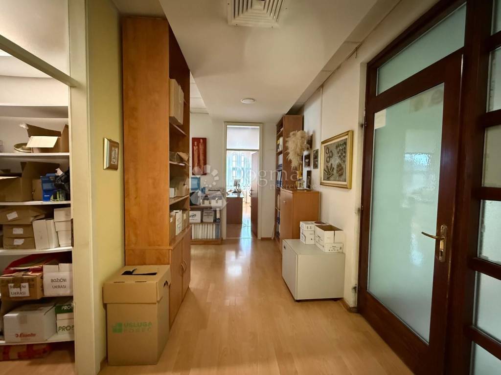 Na prodaju je poslovni prostor ukupne površine 92,82 m, smješten na drugom katu poslovne zgrade u samom centru Poreča, neposredno uz tržnicu, u blizini svih gradskih sadržaja te svega 300 metara od mora.