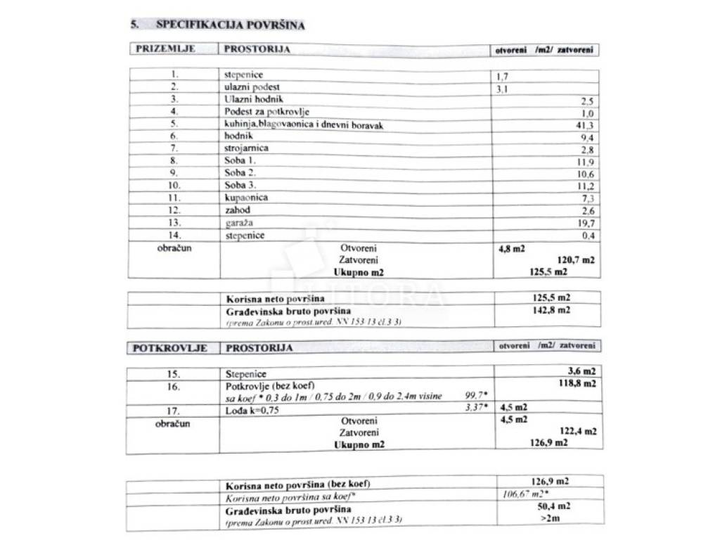Zemljište ima površinu od 406 m², a dimenzije parcele su 18 m širine × 23 m dužine. Prilazni put do parcele je makadamski, širine 6 m. Parcela je pod blagim nagibom, orijentirana prema jugu. Za zemljište je pribavljena pravomoćna građevinska dozvola za izgradnju slobodnostojeće obiteljske kuće prizemlje + potkrovlje s garažom. Buduća površina izgrađenog objekta bila bi 193,2 m². Komunalni i vodni doprinos su plaćeni. Na zemljištu su započeti građevinski radovi – izvršeni su iskopi, izgrađeni su temelji i temeljna ploča, iskopana je jama te je ugrađen bio pročišćivač (5 m³). Na terenu je napravljena i bušotina (33 m dubine) te ima voda s postavljenom pumpom. Udaljenost od centra Vodica je 600 m, a od plaže Vruje 800 m.