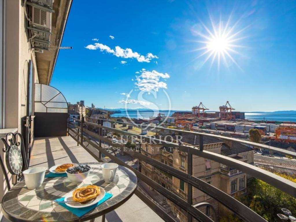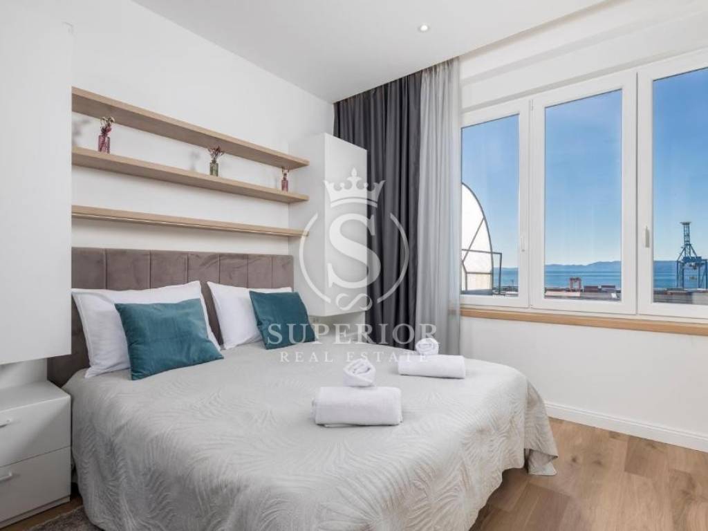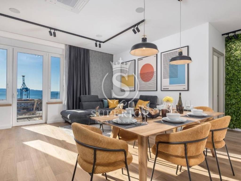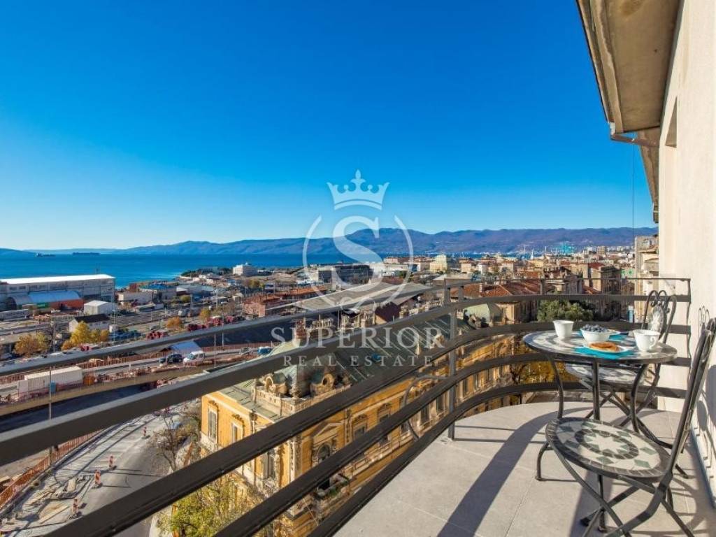 Located at one of the permanently most valuable positions, this exceptional elegant apartment is organised as three luxury residential units, offering an open panoramic view of the entire Kvarner – from the Krk Bridge to Opatija. Thanks to the urban planning position of the building and the intersection of major roads in front of it, the view is permanently open and can never be obstructed.