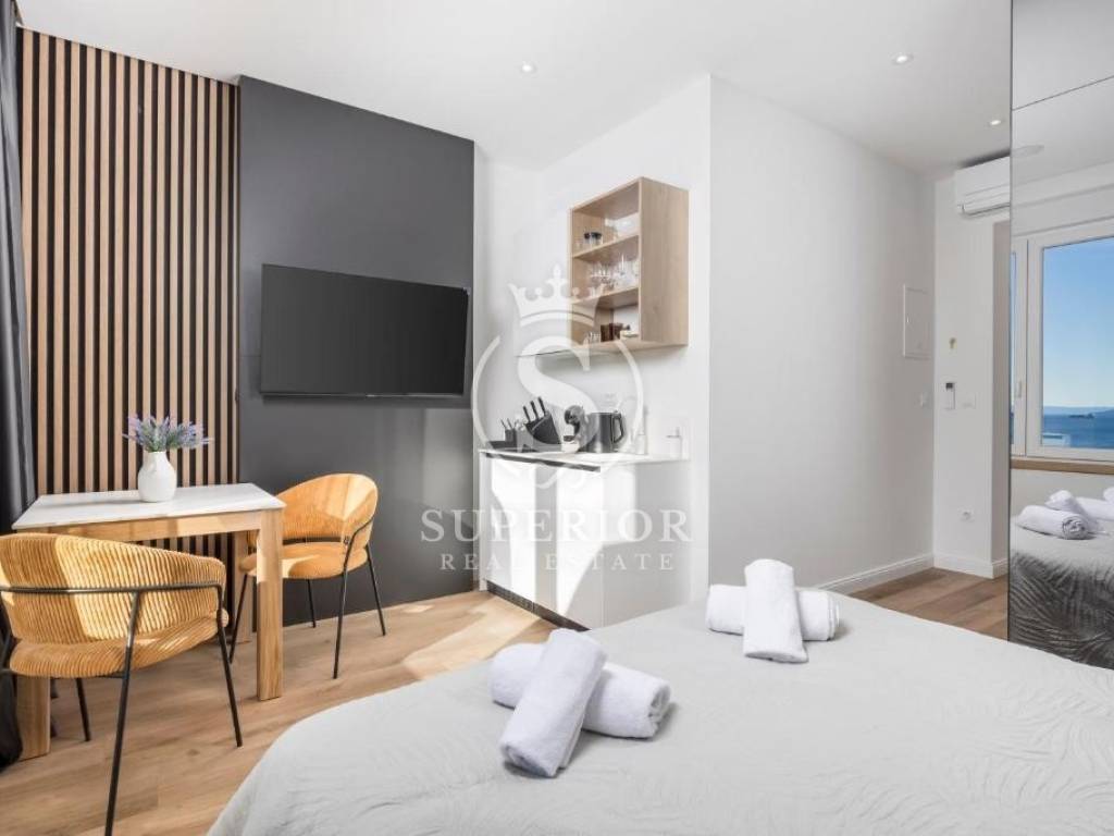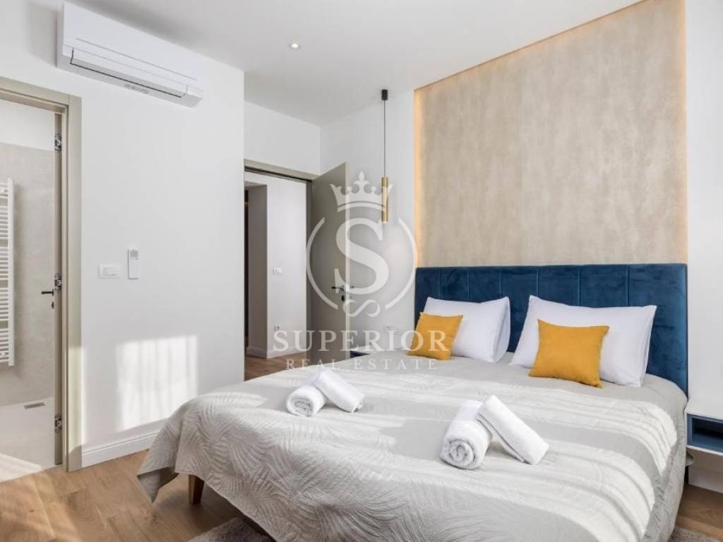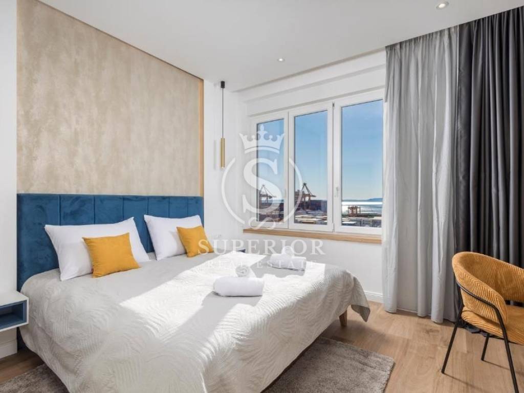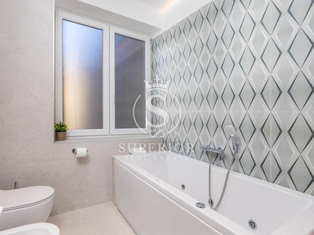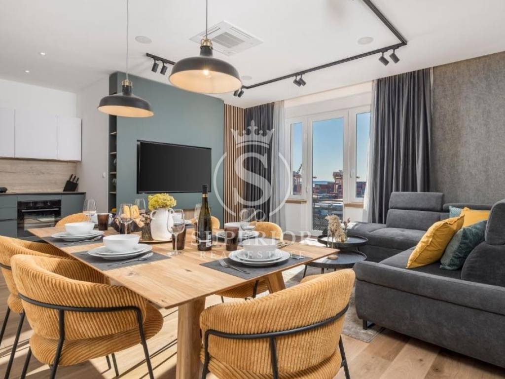 Located at one of the permanently most valuable positions, this exceptional elegant apartment is organised as three luxury residential units, offering an open panoramic view of the entire Kvarner – from the Krk Bridge to Opatija. Thanks to the urban planning position of the building and the intersection of major roads in front of it, the view is permanently open and can never be obstructed.
