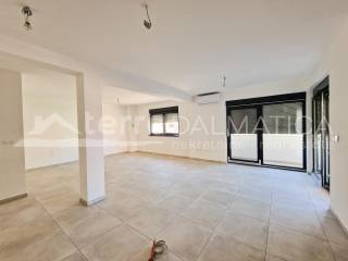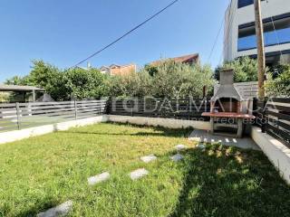 In Vodice, a three bedroom apartment with a garden near the beach is for sale. The apartment is located in a building with three floors, built on the principle of an apartment per floor. The building is located in a great location, just three minutes walk from the most famous beach in Vodice. The apartment is located on the first floor, and with two parking spaces it has a garden of 89 m2 with storage. The living area of ​​the apartment is 110 m2 and consists of a large living room with kitchen, dining room and living room as a whole, hallway, bathroom and three bedrooms, one of which has its own bathroom. The living room opens onto a covered terrace of 22 m2. Underfloor heating is installed in the living area of ​​the apartment and the bathroom, and PVC windows with electric ALU shutters and mosquito nets are installed throughout the apartment. Vodice is a popular tourist destination known for its various tourist and catering facilities, long beaches and branching bike trails. They are an ideal destination because they are located near Sibenik and two national parks, Krka and Kornati. The cities of Zadar and Split are only an hour's drive away. Contact our agent and schedule your tour.