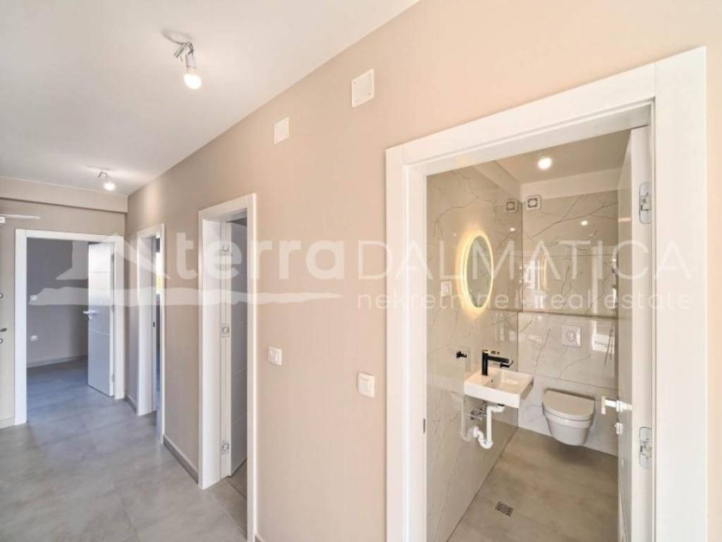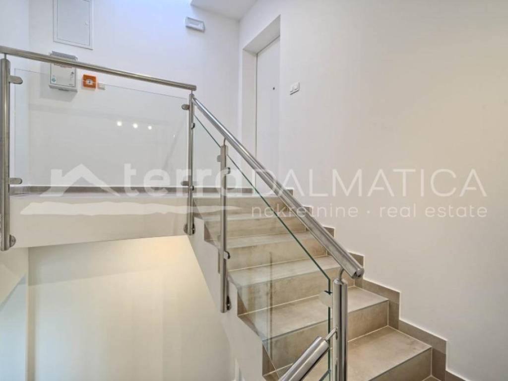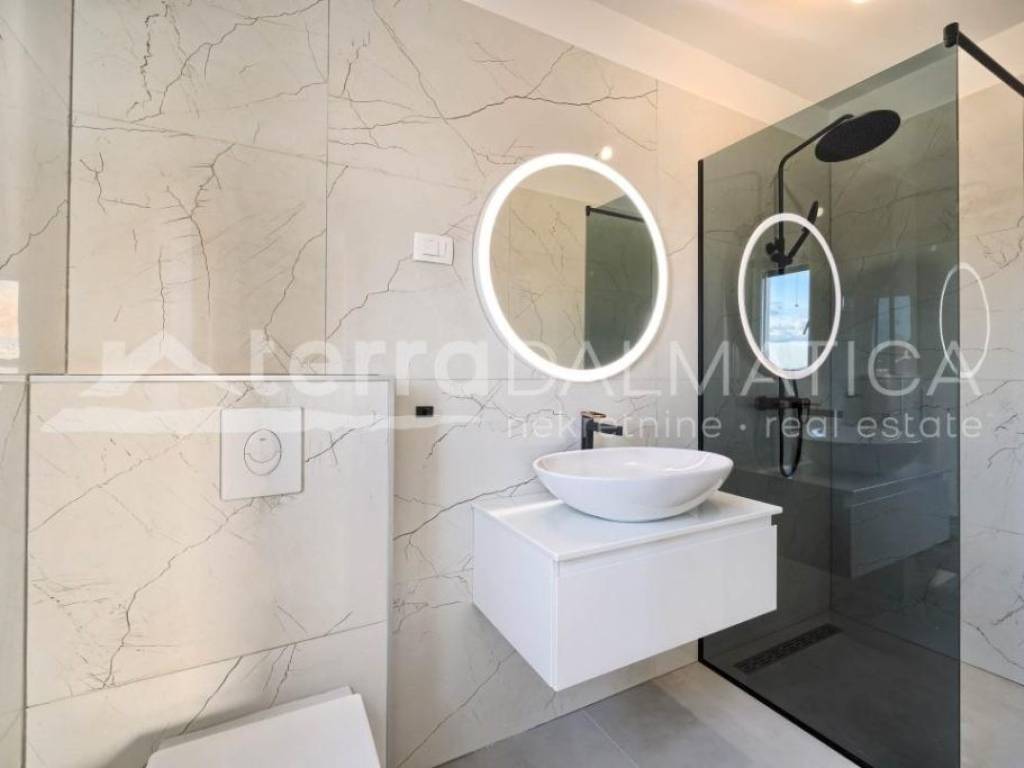 A luxury apartment with 4 bedrooms and a sea view is for sale in Brodarica near Sibenik. We present an exclusive apartment in a new building located only 140 meters from the Adriatic Sea. This spacious apartment extends over the entire second floor of a semi-detached building, offering ultimate luxury and privacy. **Location:** The apartment is located in Brodarica, near Sibenik, and is located in a building with a total of three floors, with a flat roof. This location provides a perfect harmony between quiet coastal life and quick access to all facilities. **Apartment details:** - 4 spacious bedrooms - 3 elegant bathrooms (2 private, 1 shared) - Separate toilet in the entrance hall - Living space of almost 37m2 with integrated kitchen, living room and dining room - Two covered terraces with a wonderful view of the sea and the island of Zlarin **Additional Advantages:** - Second floor, complete privacy - Modern architecture with a flat roof - Close to the sea, only 140 meters away This apartment offers the ultimate combination of spaciousness, elegance and a beautiful view of the sea. Contact our agent and schedule your tour.