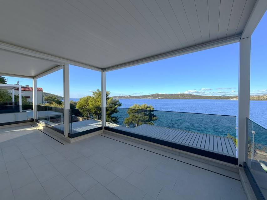 In the vicinity of Šibenik , in the quiet village of Šparadići , a modern three-bedroom apartment is for sale located in the first row to the sea, just five meters from the coast. The apartment is located on the ground floor of a luxurious new building and is designed to provide maximum comfort, privacy and quality of life by the sea. The project is currently under construction, and completion of works and the possibility of moving in are planned for the end of 2025.