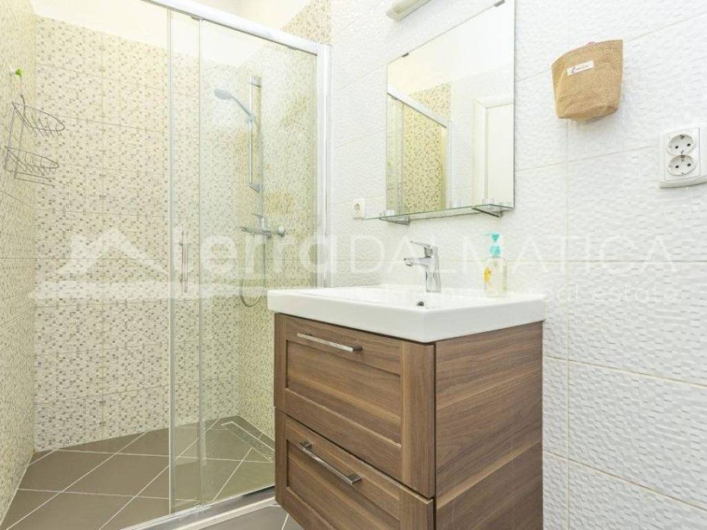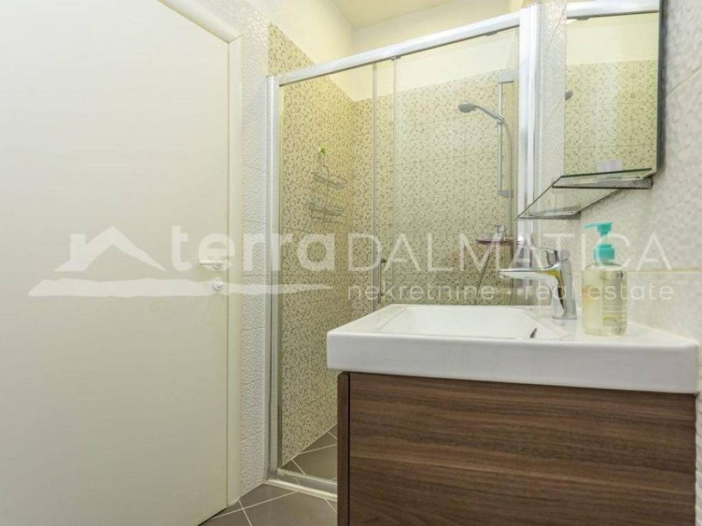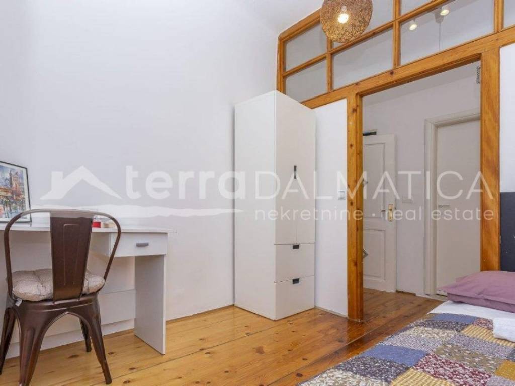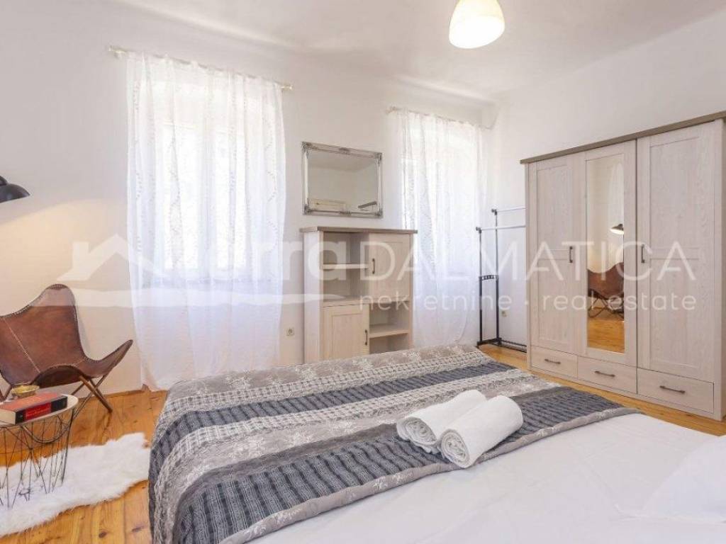 A spacious three-room apartment of 66.80m2 with a large kitchen and a newly decorated bathroom, is full of light through a large number of windows. It is located in the very heart of Šibenik, near the city garage and overlooks the greenery. The apartment has a well-organized storage room on the ground floor with piped water and electricity, as well as a separate toilet on the same floor. The apartment extends through the entire second floor and the building has been properly maintained with only two owners. The apartment is for sale fully furnished and equipped, and the buyer would also be given a tourism business with high ratings and reviews for a well-established summer rental. For the old part of the city of Šibenik, a rarely comfortable and charming apartment to enjoy all year round, and it has two external doors and can easily be divided into two residential units.