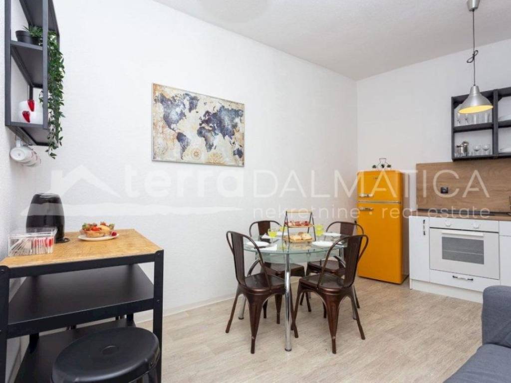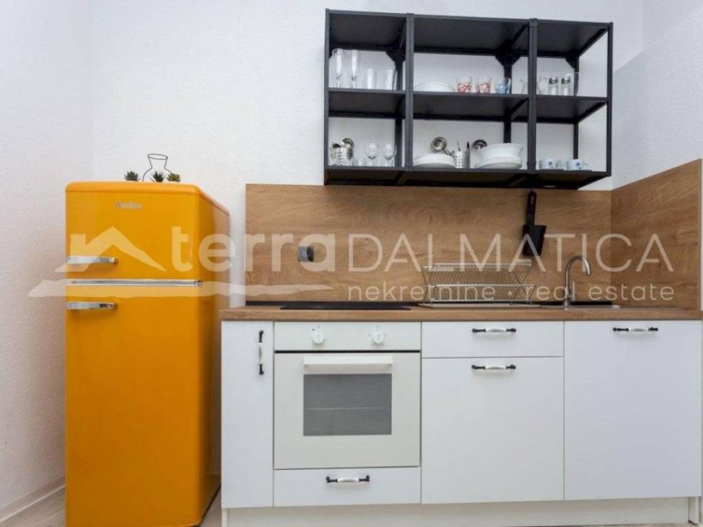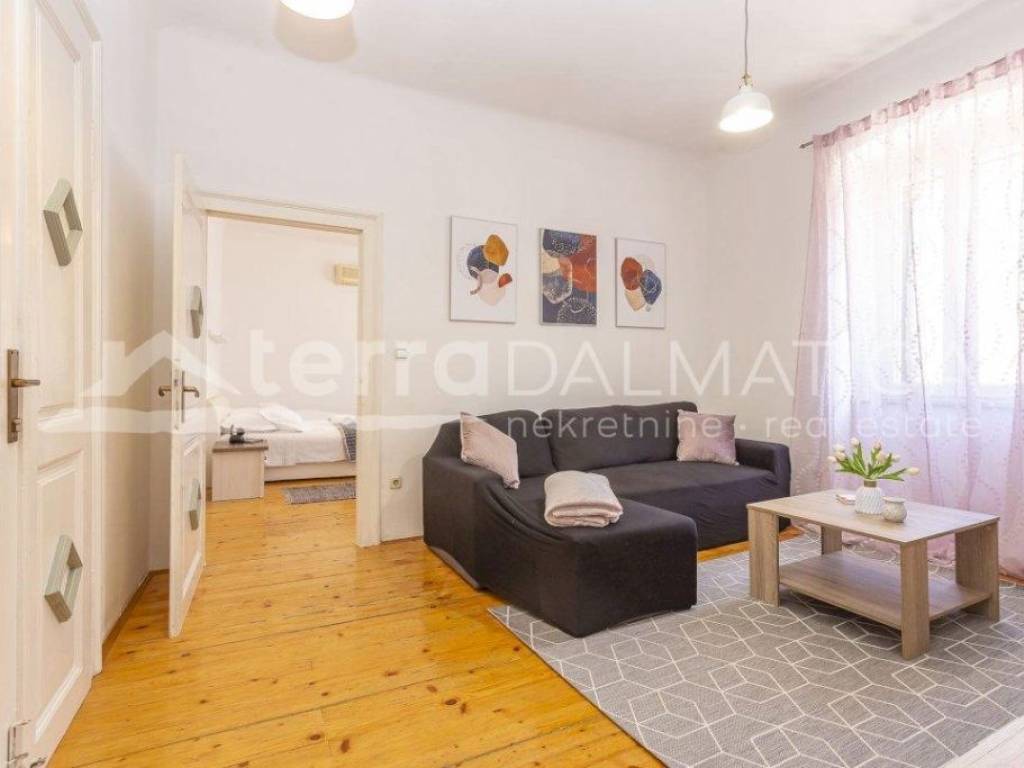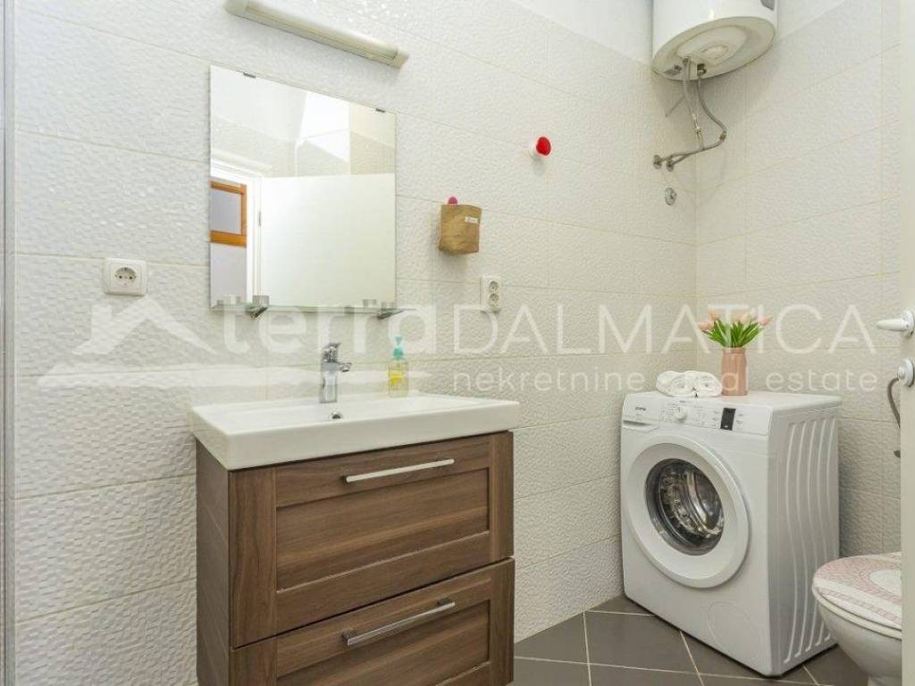 A spacious three-room apartment of 66.80m2 with a large kitchen and a newly decorated bathroom, is full of light through a large number of windows. It is located in the very heart of Šibenik, near the city garage and overlooks the greenery. The apartment has a well-organized storage room on the ground floor with piped water and electricity, as well as a separate toilet on the same floor. The apartment extends through the entire second floor and the building has been properly maintained with only two owners. The apartment is for sale fully furnished and equipped, and the buyer would also be given a tourism business with high ratings and reviews for a well-established summer rental. For the old part of the city of Šibenik, a rarely comfortable and charming apartment to enjoy all year round, and it has two external doors and can easily be divided into two residential units.