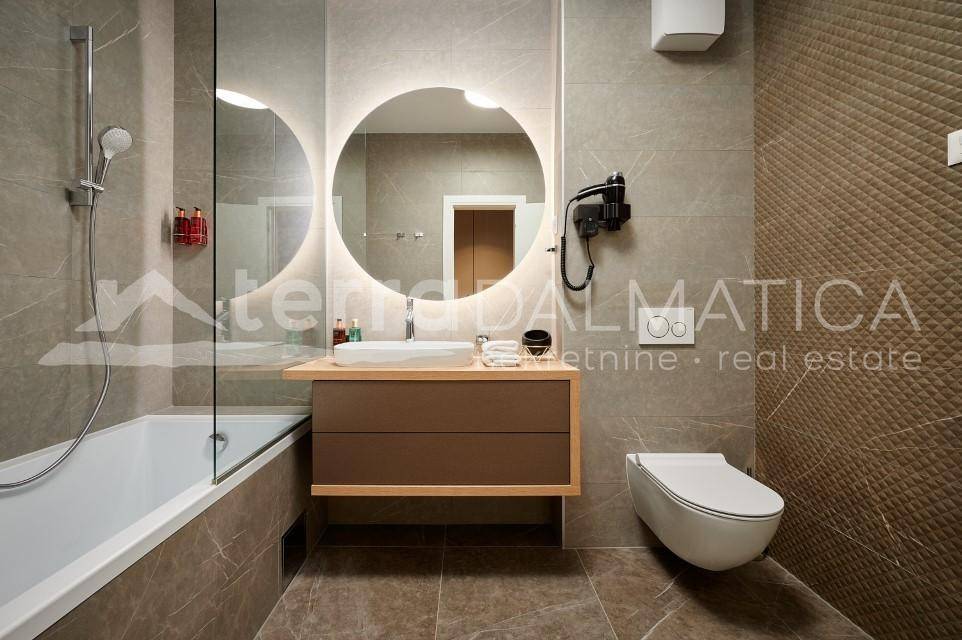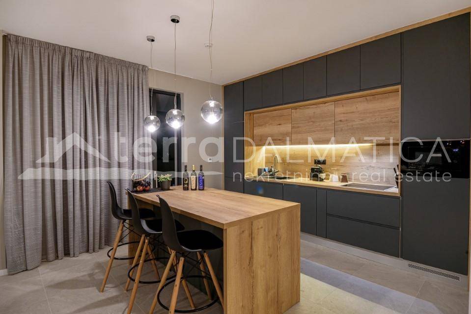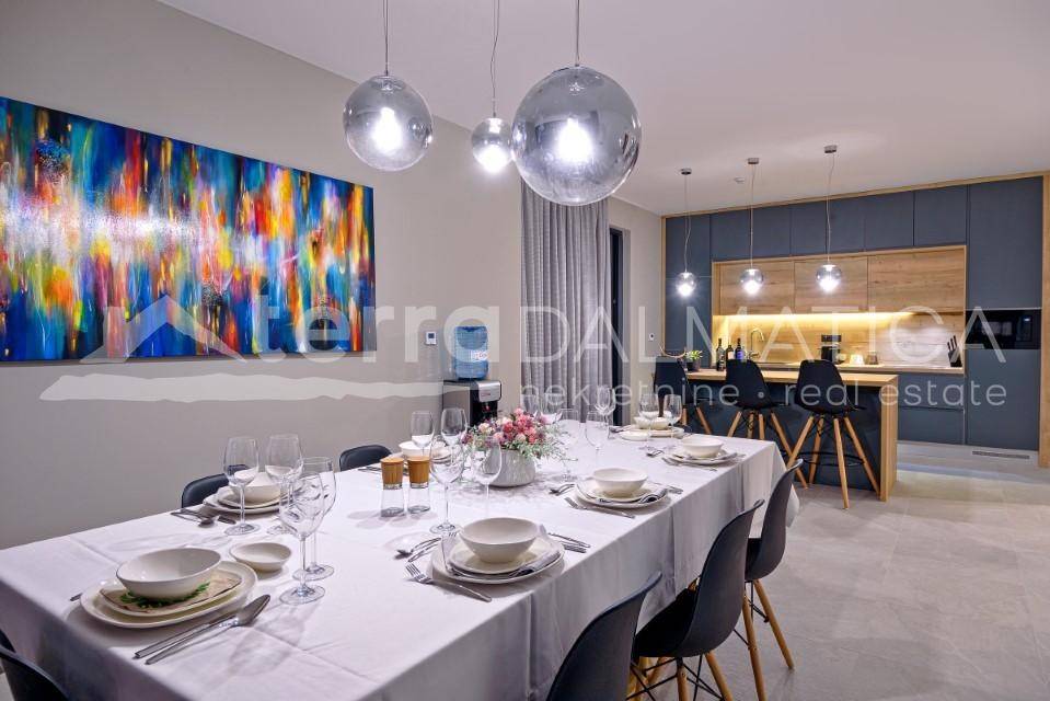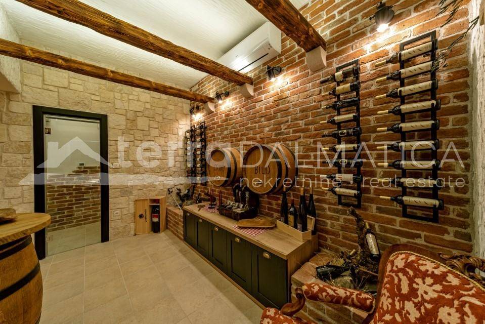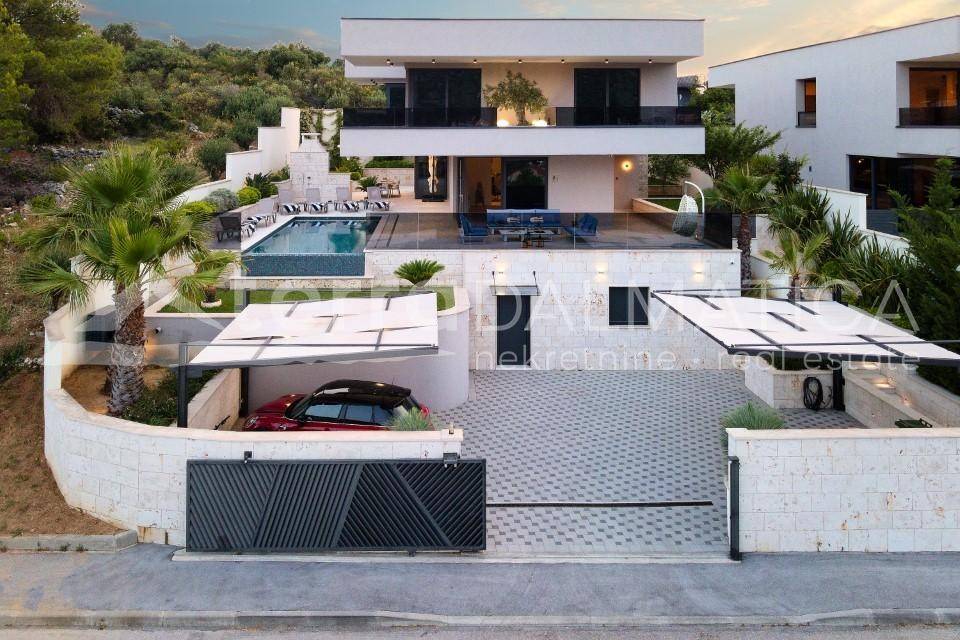 The villa has a spacious parking space for several vehicles, which is secured within the plot. Marina is a peaceful Dalmatian village located along the coast, with close proximity to the popular Trogir, perfect for lovers of nature and a peaceful life. Trogir is on the UNESCO World Heritage List and is recognizable by its narrow stone streets and is rich in restaurants and cafes. The villa in Marina is an ideal location for a luxury vacation, with attractions easily accessible, but with enough privacy for complete relaxation. With a modern design and top-notch amenities, the villa is perfect for families or investors looking for a luxury property. For more information, contact our agent.