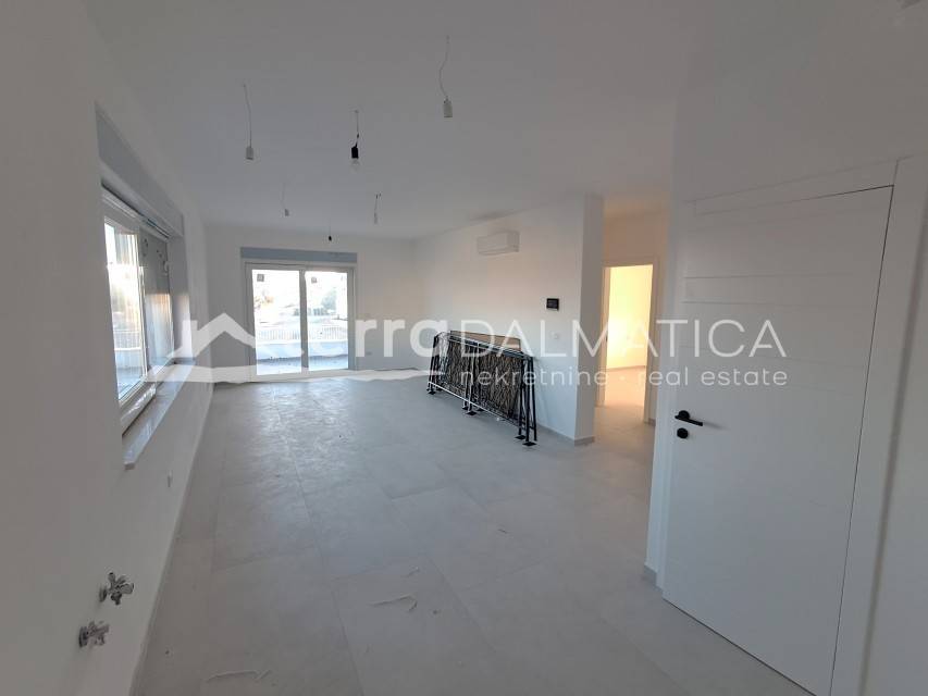 An apartment with a roof terrace is for sale in Vodice. Apartment S4 is located on the first floor of a smaller residential building with a total of 4 residential units. The building is currently under construction, and the planned completion of construction is scheduled for the end of 2025. The location is in a quiet environment, and close to all facilities. The apartment has a sea view.