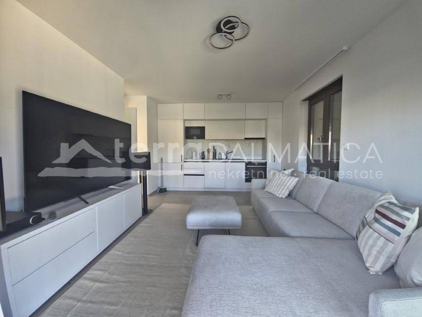 In the quiet coastal town of Brodarica, located in the immediate vicinity of the historic city of Šibenik, a fully furnished apartment is offered for sale, which represents the perfect combination of comfort, quality and an exceptional location. This apartment, located in a residential building with a total of eight units, covers an area of ​​42 square meters and provides an ideal space for a comfortable life or vacation. Upon entering the apartment, you are greeted by a functional entrance area that leads to a spacious living room, dining room and kitchen, harmoniously integrated into a single whole. This open concept space allows for maximum usability and airiness, creating a pleasant atmosphere for everyday activities. The bedroom is designed with special attention to comfort. The modernly equipped bathroom will satisfy even the most demanding tastes, offering a high level of functionality and aesthetics. One of the special advantages of this apartment is the covered glass terrace that allows you to enjoy the outdoors all year round, regardless of the weather conditions. Residents of this apartment building have access to a shared swimming pool, which is an exceptional convenience, especially during the warm summer months. The pool provides refreshment and recreation opportunities, further enriching the quality of life in this building. The apartment also includes one closed garage space, which is extremely valuable in coastal locations where parking space is often limited. This convenience ensures the safety of your vehicle and additional convenience in everyday life. The location of this apartment is truly extraordinary. In the immediate vicinity there is a popular beach, ideal for families and individuals who appreciate the cleanliness of the sea and the quality of amenities. The proximity of the city of Šibenik provides easy access to cultural and historical sites, shops, restaurants and other necessary amenities. Good transport connections ensure ease of travel, whether for everyday obligations or exploring nearby attractions. The quality of construction, the use of top-quality materials and carefully selected furniture and equipment further contribute to the value of this apartment. All these characteristics make it an ideal choice for year-round living or as an investment for tourist purposes. This apartment in Brodarica represents a rare opportunity to acquire a property that combines all the key elements for a quality life on the coast - a prime location, functional and aesthetically pleasing space, additional amenities such as a swimming pool and garage, and proximity to all necessary amenities. For any additional information or to arrange a viewing, please feel free to contact us.