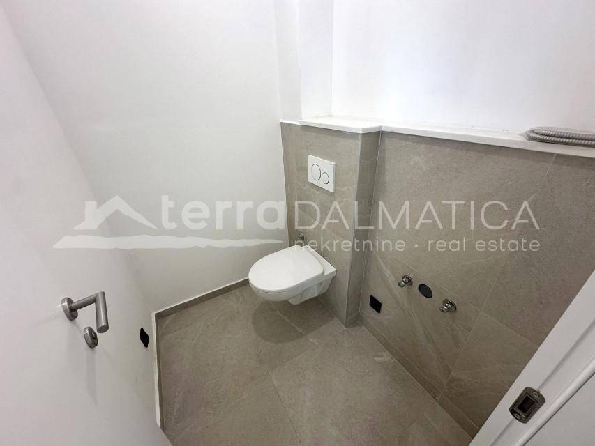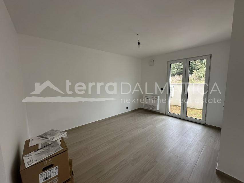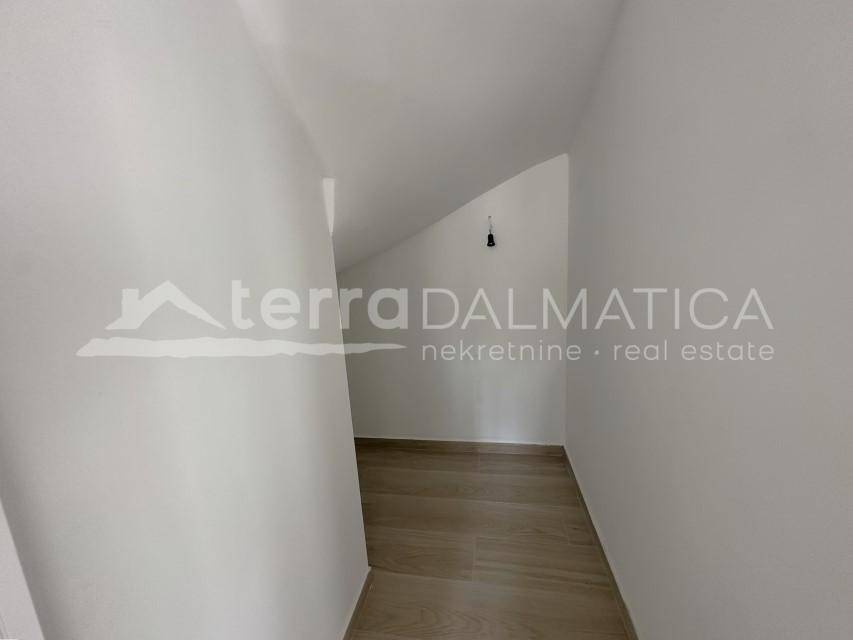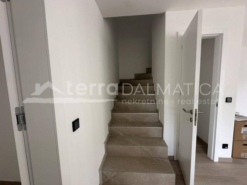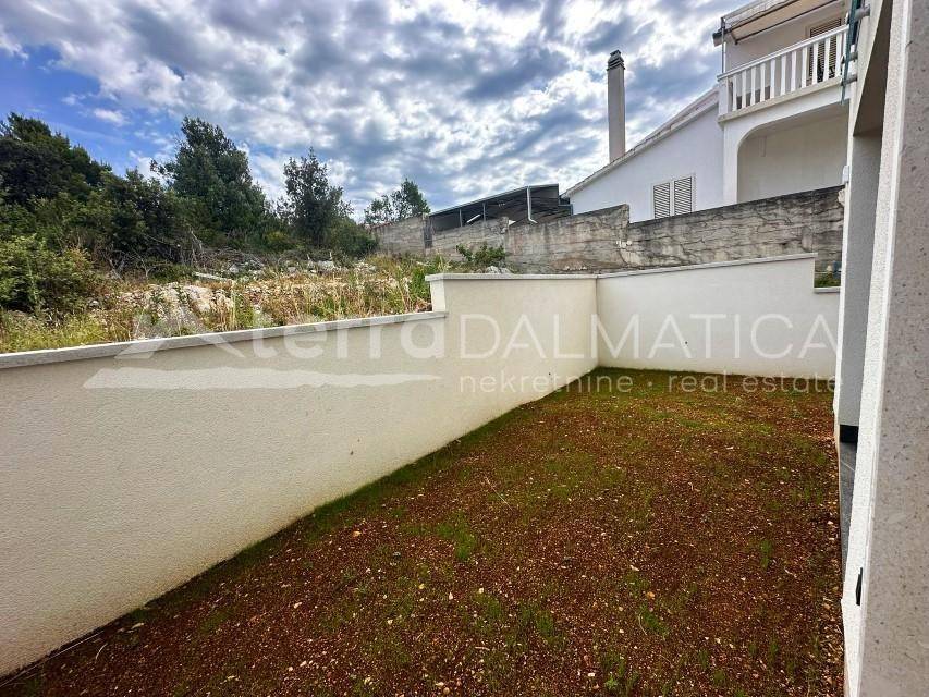 A duplex apartment for sale in Jezera, located just 500 meters from the city beach and 330 meters from the town center. Apartment S1 has a total interior area of 90 m² and features covered terraces, along with an additional loggia on the upper floor. The ground floor includes an entrance area with a guest toilet, a staircase, and a practical storage space underneath. The spacious open-plan living room is connected to the kitchen and dining area, which opens onto a covered terrace and a garden—ideal for relaxation. On the upper floor, there are two comfortable bedrooms with two modern bathrooms. Each bedroom has access to a terrace. The apartment is part of a modern urban villa built with high-quality materials, ensuring comfort, thermal and sound insulation, and energy efficiency. Features include underfloor heating in the bathrooms, high-quality ceramics and parquet flooring, BlueEvolution windows and sliding doors, and a smart system for heating, cooling, and blinds. Glass railings on the balconies further enhance the modern and elegant look. The apartment also comes with a designated parking space. Jezera is a picturesque village on the island of Murter, known for its authentic Dalmatian charm, peaceful atmosphere, and proximity to Kornati National Park. This property is ideal for those seeking a modern home or an investment in a highly attractive tourist rental location. Contact us for more information or to arrange a viewing.