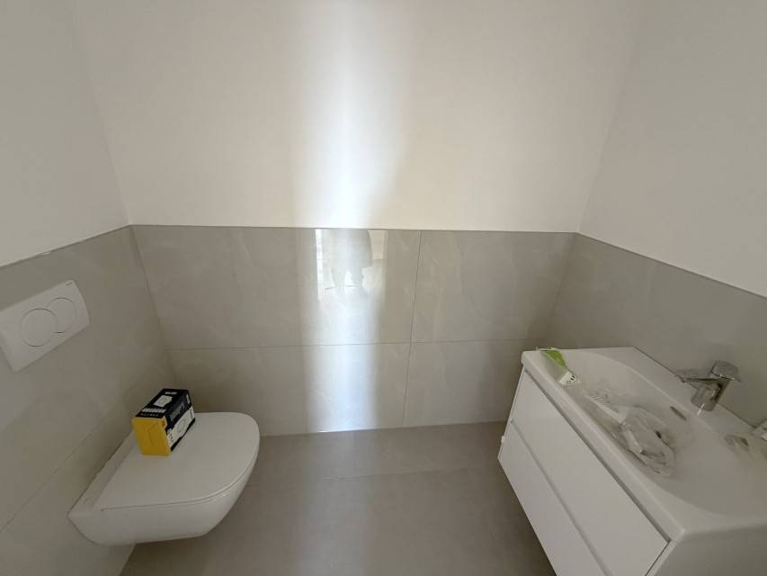 Quality materials are used in the construction. Underfloor heating is planned in the bathrooms, and all rooms are equipped with air conditioning for heating and cooling. The apartment has an anti-burglary system , and the completion of the works is planned for spring 2026 . The property includes two parking spaces .