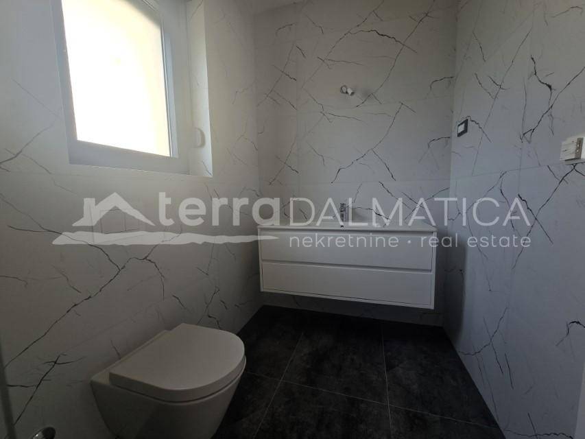 On the island of Murter, in a quiet part of town that comes alive in the summer, lies a new apartment in a modern building that offers the perfect balance between everyday life and vacation, thanks to its functionality, space, and location. Situated on the first floor, this bright and airy apartment is ideal for families, as well as for those who simply want more space, peace, and the beauty of the sea at their fingertips. With a total living area of 82 m², the apartment features a smart layout. It consists of a spacious living room connected to the kitchen and dining area, three comfortable bedrooms, two bathrooms, and a covered terrace with a partial view of the sea and surroundings. Every room exudes freshness, simplicity, and comfort. The building is a new construction, built with quality and attention to detail. Aluminum joinery, underfloor heating, and Mitsubishi air conditioners in every room ensure year-round comfort regardless of the season. The entrance areas are decorated with modern lines and elegant details. The apartment comes with its own parking space in the building’s courtyard – a practical feature especially appreciated during the busy summer months. Murter is one of those places that stays in your memory. Its streets smell of lavender and the sea, and the pace of life is relaxed but never boring. The island is connected to the mainland by a movable bridge, making it accessible even in winter. In addition to being the perfect base for visiting the Kornati archipelago, Murter also offers numerous organized and hidden beaches, walking trails, excellent gastronomy, and a relaxed yet high-quality lifestyle. This apartment is more than just square meters and a location – it’s a space waiting to become someone’s home, haven, or smart investment in the future.