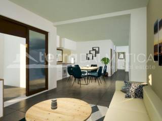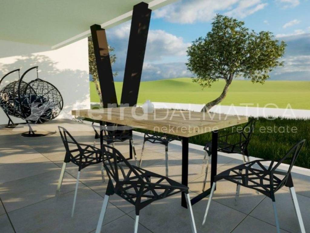 An apartment for sale in Vodice, located on the first floor of a residential building with a total of nine apartments. The apartment has an area of ​​88 m² of living space and consists of an entrance area, hallway, kitchen, dining room, living room, three bedrooms, bathroom and additional toilet. The apartment also comes with a covered terrace of 10 m², a storage room on the ground floor of the building and one parking space. The apartment is equipped with ceramic tiles in the living areas, while laminate flooring is installed in the bedrooms. Underfloor heating is installed in the living room and bathroom, and air conditioning units are located in the living room and all bedrooms. Additionally, the apartment has electric shutters, TV/SAT connections in all rooms and a connection for an electric car charger in the storage room. The building was built according to all professional rules, with a modern architectural solution in gentle brown tones. It has access from a maintained road and complete infrastructure. The apartments on the first and second floors offer a view of the city, the sea and the surrounding islands. The property is currently under construction, with completion scheduled for spring 2026. Vodice is a well-known tourist resort on the Šibenik Riviera, about a 10-minute drive from Šibenik. The town offers a developed infrastructure, numerous beaches, promenades, shops, restaurants and cultural attractions. Due to its good transport connections and developed local offer, Vodice is suitable for permanent residence, vacation or investment in tourist rental. Renders were used in the ad.