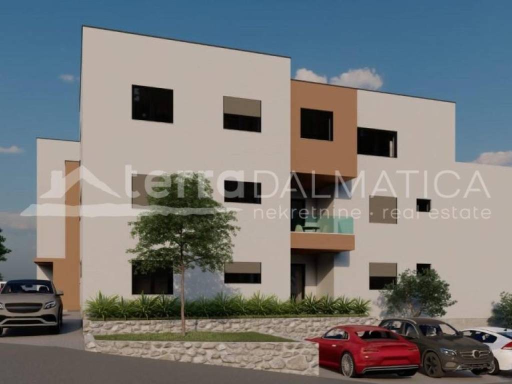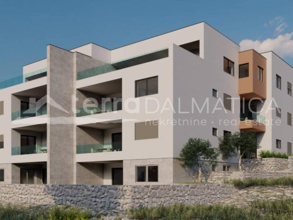In Žaborić, a charming seaside town near Šibenik, a modern two-bedroom apartment is for sale located on the first floor of a new building under construction. The building is part of a duplex (buildings A and B), with a total of 12 apartments spread over four floors, designed for comfortable and functional living. The apartment with an internal living area of ​​64.90 m² consists of a spacious living room, dining room and kitchen in one unit, with access to an 8.30 m² loggia - ideal for relaxing with morning coffee or evening sunsets. In the continuation of the apartment there is a hallway leading to the bathroom and two comfortable bedrooms. Heating and cooling in the living room and all bedrooms is provided by efficient split systems with wall units, and during the construction phase there is the possibility of installing underfloor heating installations, at the buyer's request. Domestic hot water will be prepared by electric boilers with a capacity of 80–100 liters, located in the bathroom. The apartment is equipped with a burglar-proof entrance door with additional soundproofing and seals that reduce air permeability. The interior joinery includes white, smooth doors lacquered with PU varnish, with MDF door frames also in white. Each residential unit will have its own meters for electricity and water consumption, which allows for complete cost control. The building is designed in accordance with the highest energy efficiency standards and will have an A+ energy certificate, ensuring maximum energy savings and a high level of comfort. Each apartment has one parking space and a designated location for waste disposal within the yard. During construction, only high-quality materials and technologies are used in accordance with professional rules, which guarantees durability, safety and high value of the property. Žaborić is a settlement located along the coast, approximately 10 kilometers south of Šibenik. Administratively, it belongs to the city of Šibenik and is being developed as a quiet residential and tourist zone with an emphasis on family tourism. In the immediate vicinity are two national parks – Krka and Kornati – as well as the historic core of the city of Šibenik, which is under UNESCO protection and is famous for its Cathedral of St. James and fortresses. Due to the combination of transport accessibility, proximity to the sea, tourist potential and well-maintained facilities, Žaborić represents a functional and promising location for living, vacationing or investing in real estate. For more information or a tour of the property, please feel free to contact us.