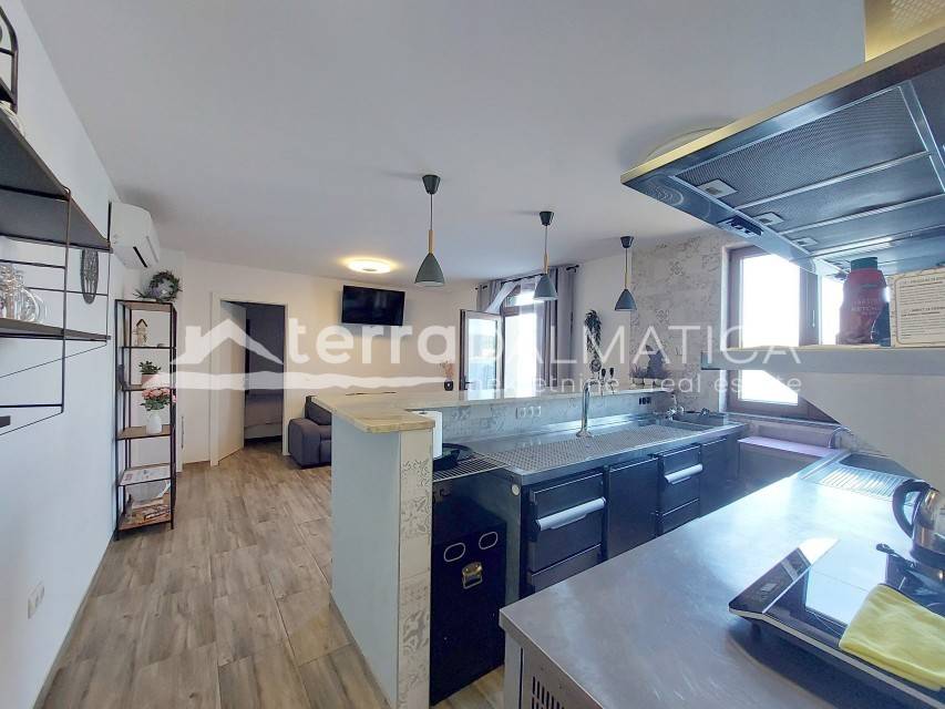 An attractive apartment for sale located in the first row to the sea in the beautiful town of Tisno.