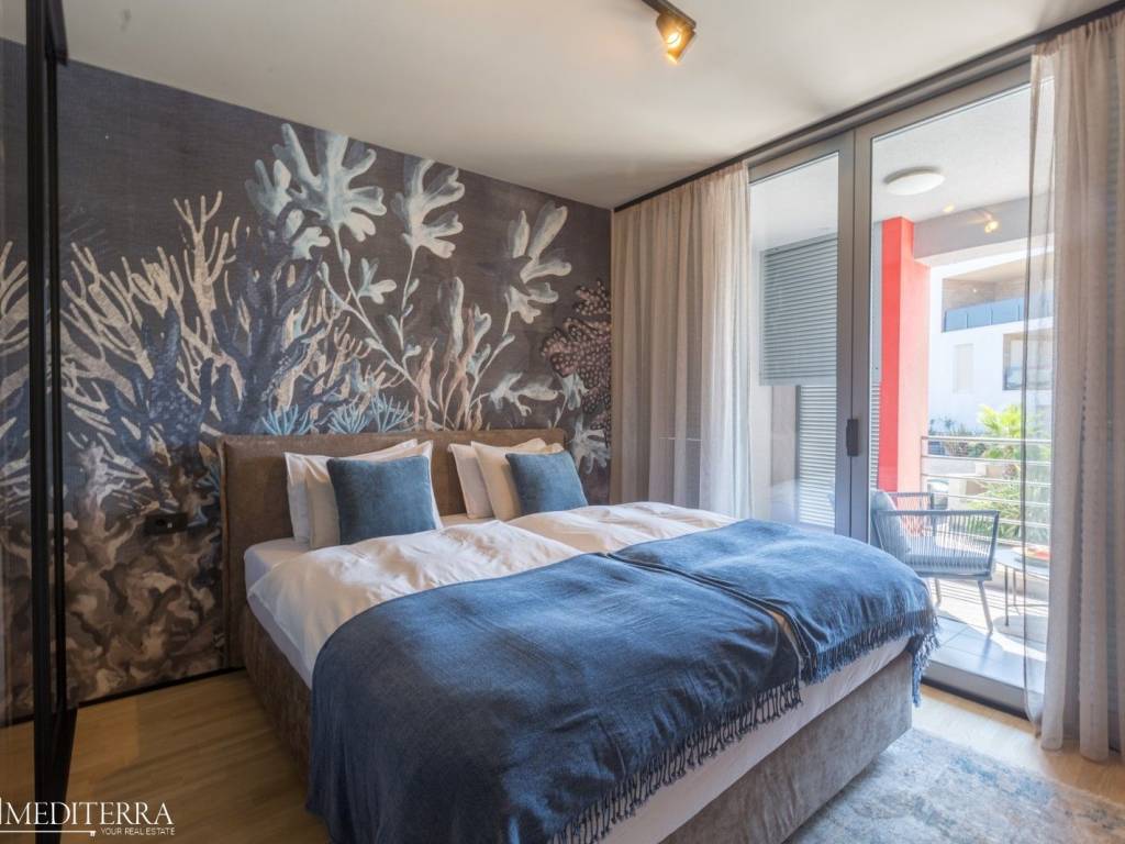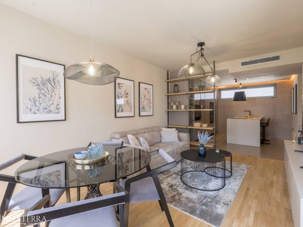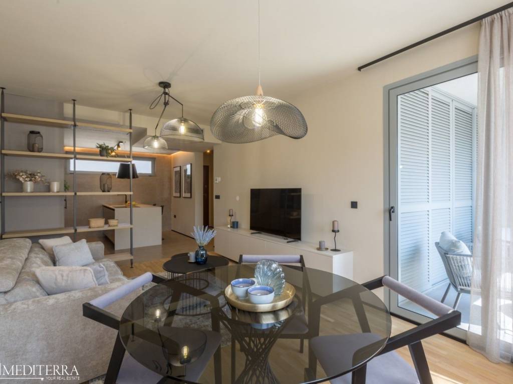 The apartment is 58 m2 and consists of an entrance hall, bathroom, pantry, bedroom with access to a covered terrace, living room, dining room and kitchen. The terrace offers a beautiful view of the sea, the marina, and the Nautica hotel.All necessary facilities are in the immediate vicinity (shops, banks, post office, restaurants, clinic, pharmacy)The apartment is air-conditioned.