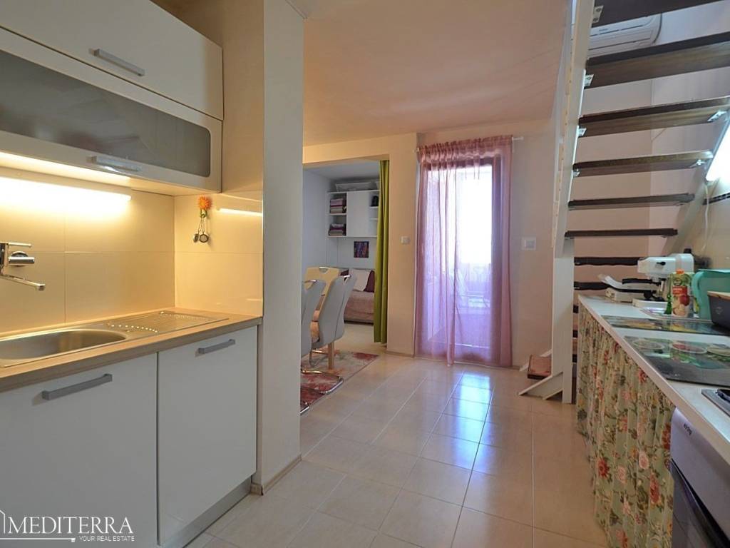 For sale is a duplex apartment located on the 1st floor and high attic of a residential building. The apartment consists of two floors - the lower one with a loggia and the upper one with a spacious terrace, ideal for enjoying the sea view.