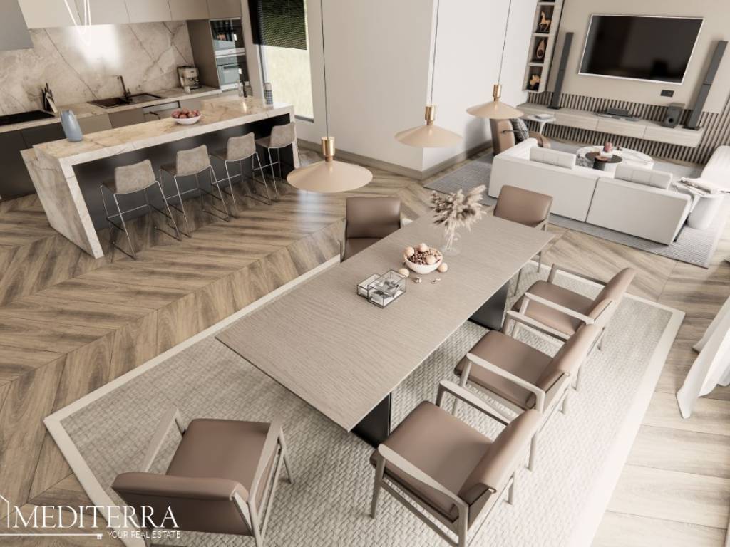 For maximum comfort, the apartment has electric underfloor heating in all rooms, air conditioners in the living room and bedrooms, as well as an intercom with a monitor. Floors can be chosen according to personal taste. One parking space is included in the price.