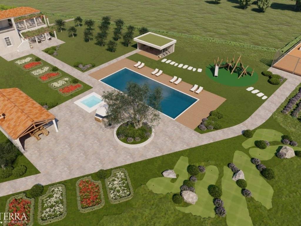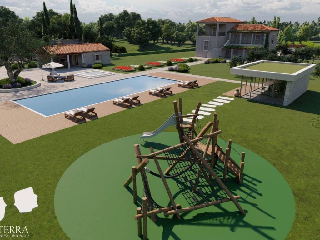 Na prodaju je zemljište od 9000 m na mirnoj lokaciji blizu Labina i Plomina, okruženo prirodom, planinama i uređenom dolinom s poljima. Veći dio površine je građevinski, dok je manji dio poljoprivredan, što omogućuje gradnju privatne stancije, velike obiteljske kuće ili manjeg turističkog kompleksa s više objekata. Sva potrebna infrastruktura nalazi se odmah uz parcelu, a u okolici je tek nekoliko lijepo uređenih kuća za odmor, što osigurava potpunu privatnost. Pogled na prirodu i planine je iznimno lijep, a lokacija je odlično povezana Labin je udaljen 9000 m, more 4000 m, dok su trgovina, restoran i ostali sadržaji na samo 1 km.