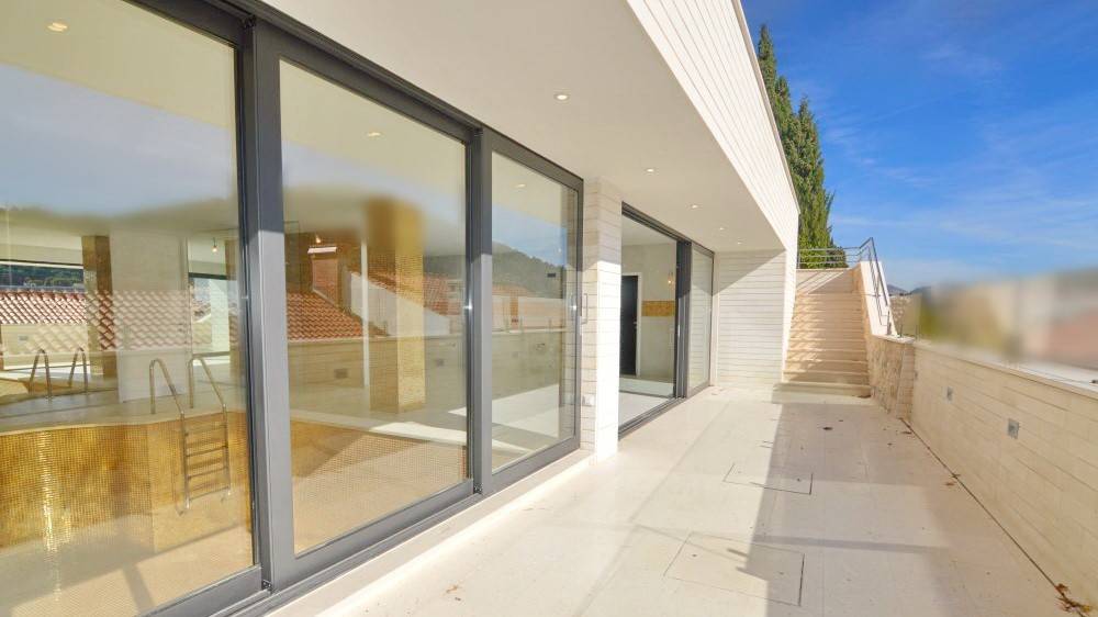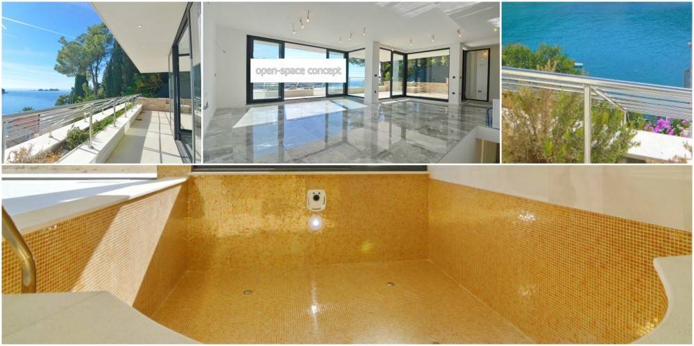 CALL FOR PRICE. We present to You a very luxury two-storey apartment / villa by the sea, on one of the most beautiful locations in Dubrovnik, with a unique view at the beautiful Lapad bay, sand beaches, open sea and reefs. Truly a beath-taking view... Rich sea-blue colors and scent of the clear sea and pines will fill Your life with exceptional beauty and harmony.These beautiful villa places are designed to meet the highest life standards, while preserving its unity with the mediterrian enviroment and carefully selected details to fulfill all the needs of the modern life. The arrangment is planned to be done with a contemporary straight lines in such way that the view at the open sea and enjoying the sunshine and healthful mediterrian climate are always available. The spacious terrases are very beautiful and they give You the opportunity to enjoy the sound of the sea and waves hitting the rocks.All of this is hidden in the part of Dubrovnik nature with many walk paths and beaches... and also very close to various facilities, such as tennis courts and great restaurants.Total residential area of villa on a two storeys with the indoor pool is app 300 m2.More information at IMB Real Estate Ltd. Dubrovnik