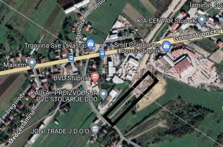 Prodajemo građevinsko zemljište u Stupniku, u neposrednoj blizini Gornjostupničke ceste. Zemljište je velikim dijelom u zoni koja je namijenjena za komercijalno industrijsku uporabu. Jedan dio parcele se nalazi u zoni koja je namijenjena za rekreaciju. Vlasnik je podnio zahtjev da se i taj dio prenamijeni u I,K. Parcela je smještena u sredini kasete u kojoj je predviđena I,K namjena, tako da ima stratešku važnost ukoliko bi netko želio veću parcelu. Moguće je dokupiti i susjedne čestice, te tako formirati česticu I,K namjene veličine cca. 8.000m2. Ovo je izvrsna prilika za investitora koji se želi pozicionirati u sredinu kasete i onda otkupljivati susjedne parcele.
