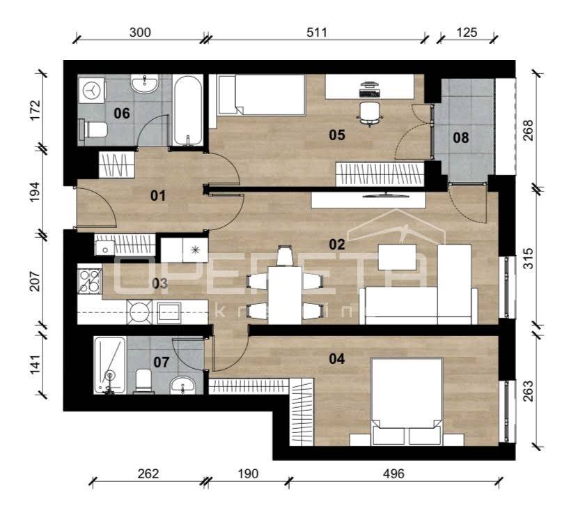Uz stan je obvezna kupnja vanjskog parkirnog mjesta, garažnog parkirnog mjesta ili garaže.