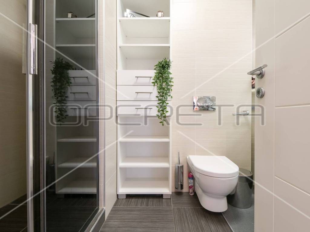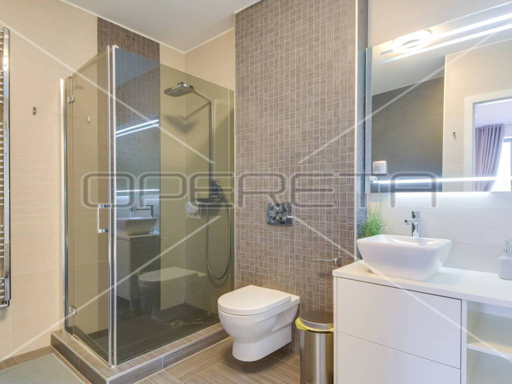 Podno grijanje, protuprovalna vrata, video portafon, garaža, kada, tuš kabina, klima, pristup osobama s invaliditetom, lift. Odlična lokacija.