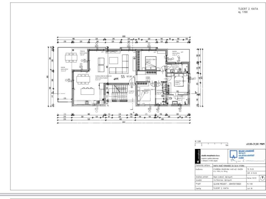 Total gross area: 282.13 m. Net area of the apartment with outdoor spaces: 160.40 m. Interior living area of the lower unit: 107.83 m. Balconies on the first level: 30.20 m gross. The price includes one spacious outdoor parking space.
