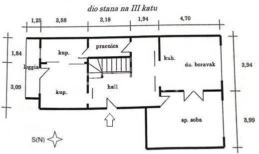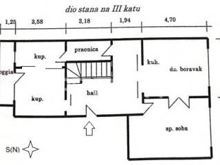 Na 3 katu: hall, stepenice, kuhinja sa dnevnim boravkom, soba, 2 kupaonice, praonica i loggia.