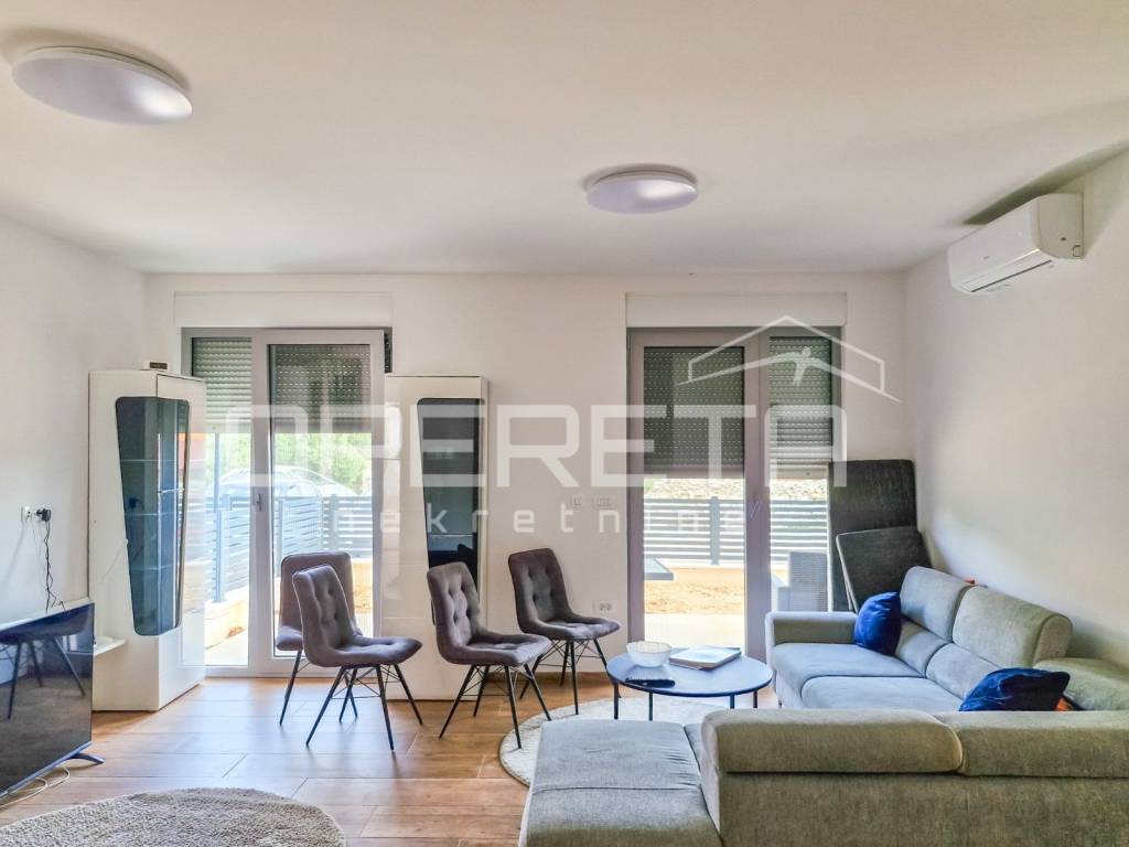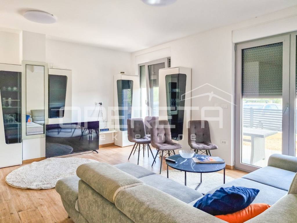 Prodaje se moderno uređen stan u prizemlju novije zgrade na otoku Korčuli, u mirnom i uređenom dijelu naselja s osiguranim parkirnim mjestom u dvorištu. Stan obuhvaća 52,62 m2 unutarnjeg prostora koji čine ulaz, hodnik, kupaonica, dvije udobne spavaće sobe te prozračan dnevni boravak povezan s kuhinjom i blagovaonicom. Iz dnevnog dijela izlazi se na dvije terase i vrt površine 22,02 m2, savršen za opuštanje u privatnosti ili stvaranje male mediteranske oaze.