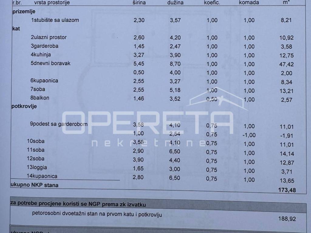- dnevnog boravka sa blagovaonicom, kuhinje, spavaće sobe, kupaonice, gardarobe i loggie na prvoj etaži,