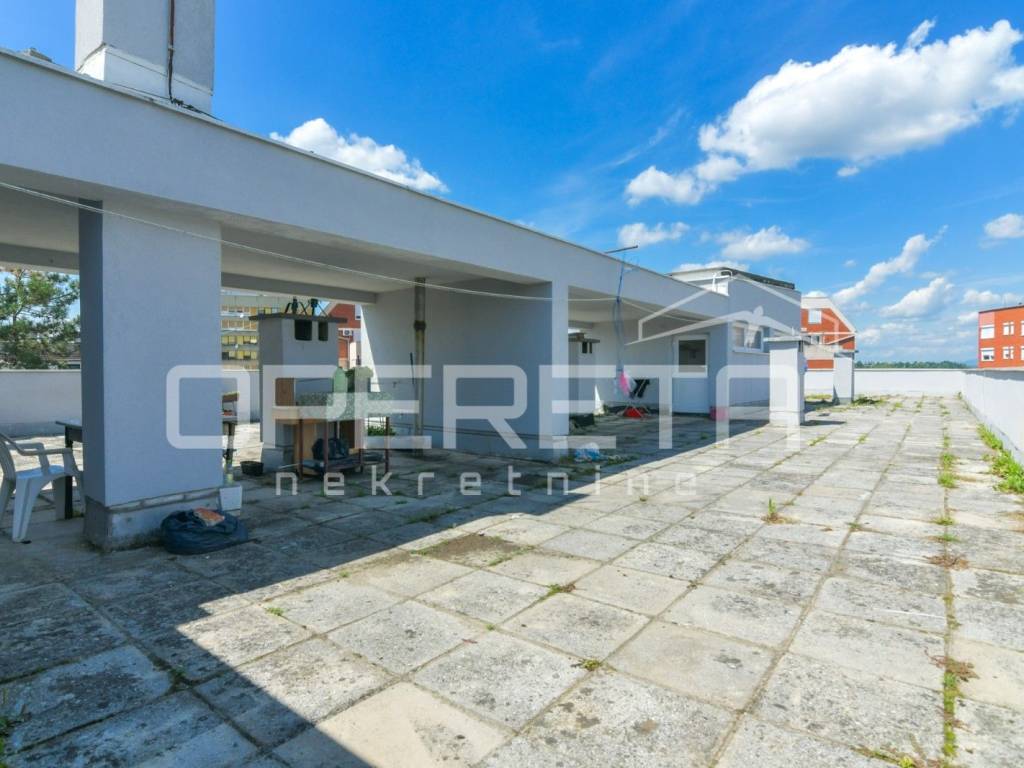 Krovna terasa s prekrasnim pogledom na grad i zelenu okolicu na zajedničko korištenje svih sustanara. 2024. g. stavljena nova fasada. Izvrsna, jedinstvena i vrlo tražena mikrolokacija, mirno okruženje u samom centru Zaprešića i neposrednoj blizini ( na svega par desetaka metara) do javnog prijevoza, doma zdravlja, banke, škole, vrtića i svih potrebnih sadržaja.