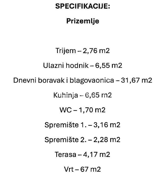 Uz kuću dolazi vrt od 67 m2 te dva natkrivena parkirna mjesta.