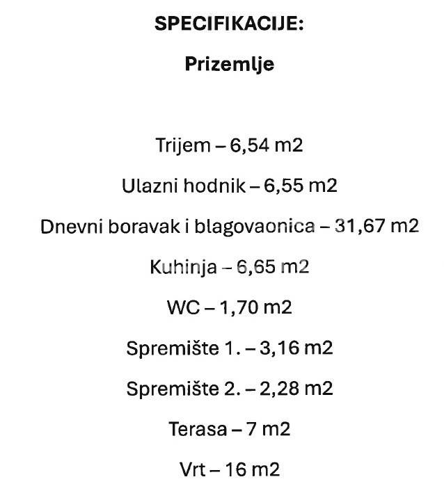 Uz kuću dolazi vrt od 16 m2 te dva natkrivena parkirna mjesta.