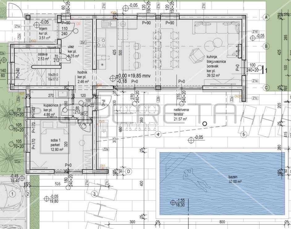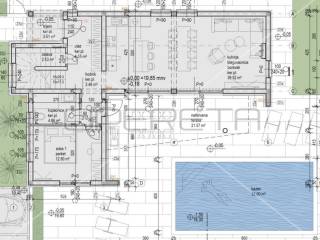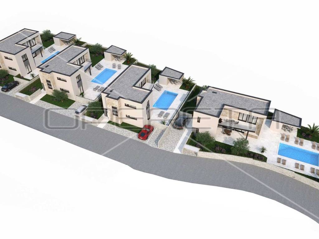 The villa is built and equipped with the most modern materials, and the buyer has the opportunity to participate in the selection of materials. Classic construction with brick and concrete, which are excellent thermal insulators, ensures an energy-efficient home. ALU carpentry with 6 chambers and three-layer glass ensures superior insulation and a modern look, while the facade is covered with tavert stone, with Styrofoam insulation in beige color.