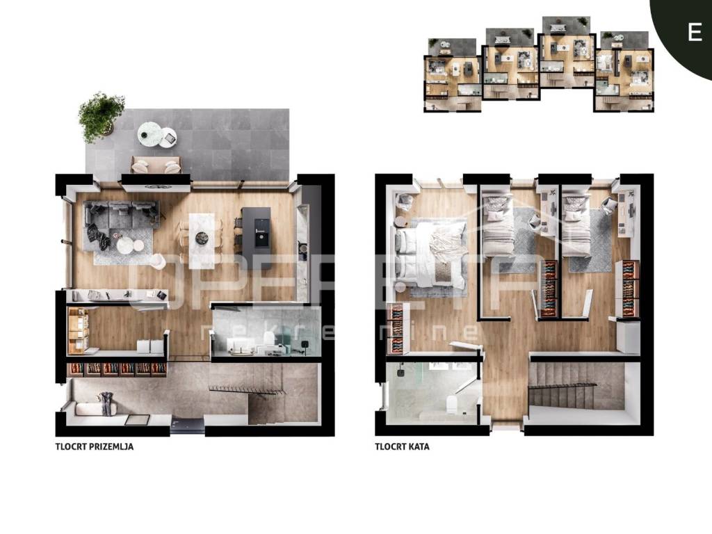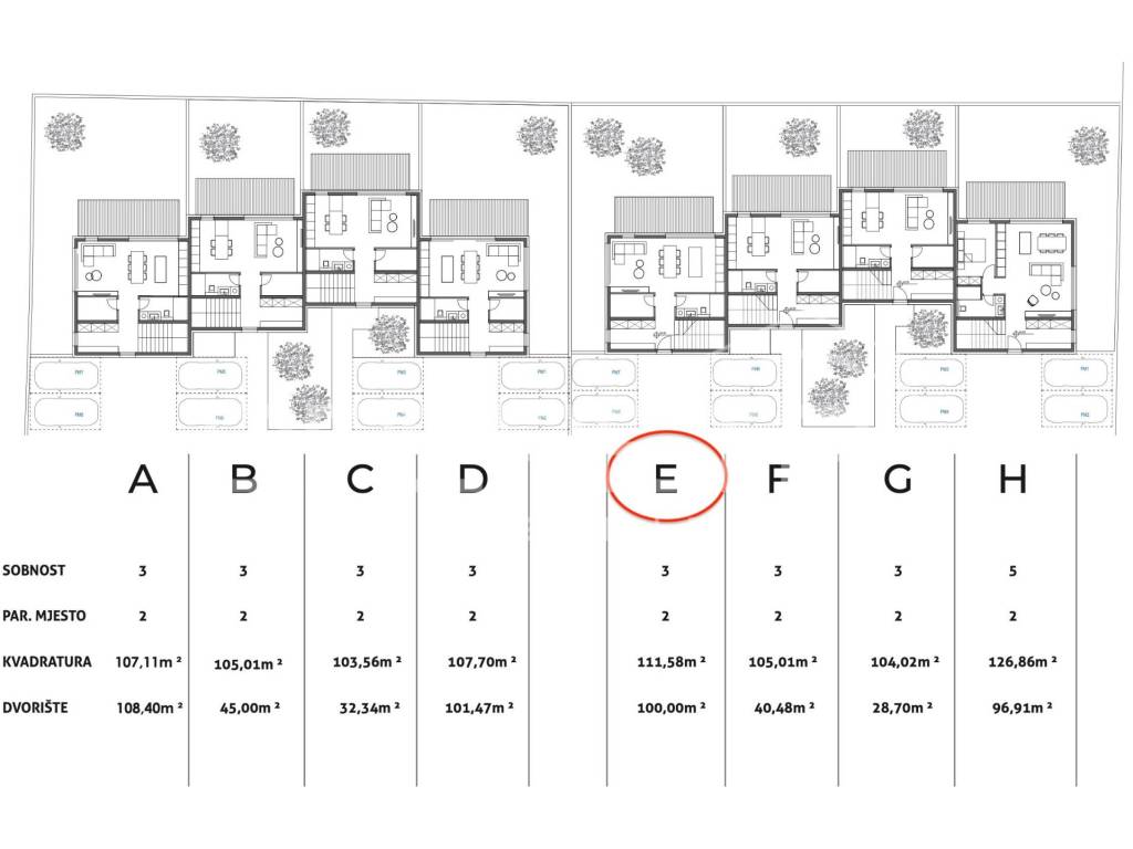 VELIKA GORICA OKOLICA, KUČE, KUĆA U NIZU. OBJEKT OZNAKE "E" Prodaje se kuća u nizu koja se sastoji od prizemlja, kata, vrta i dva parkirna mjesta. Kuću odlikuju kvaliteta i mali troškovi! Montažni objekt! Grijanje podno putem toplinske pumpe 3 spavaće sobe 2 kupaone spremište Očekivani završetak radova početak 2026 godine