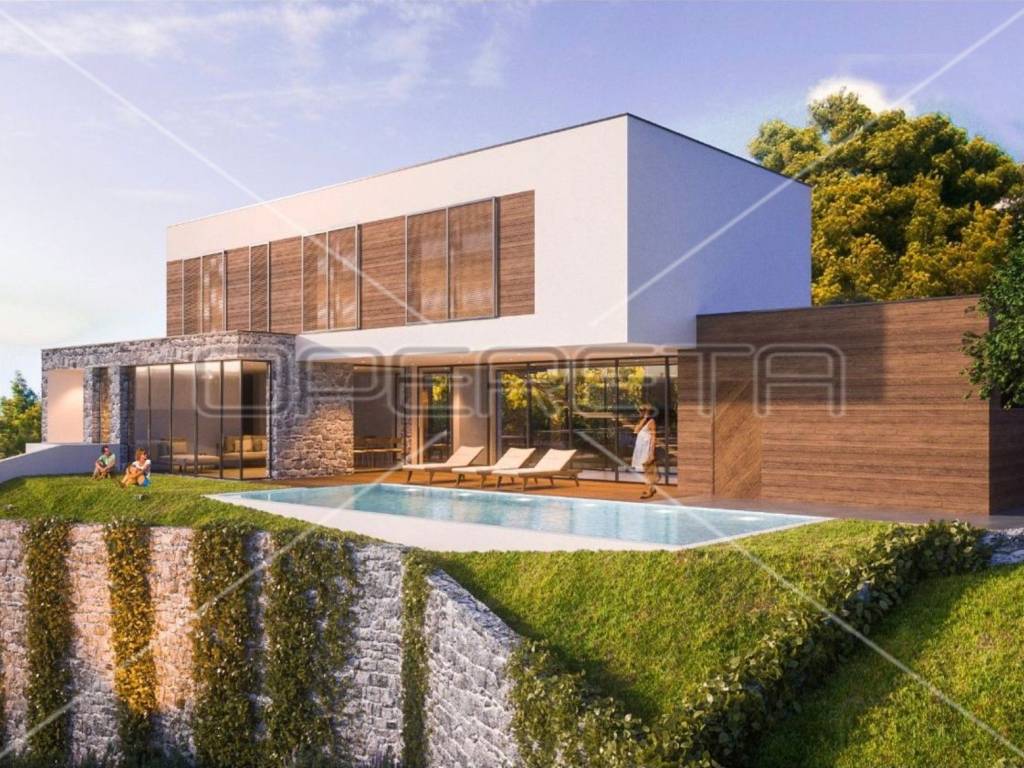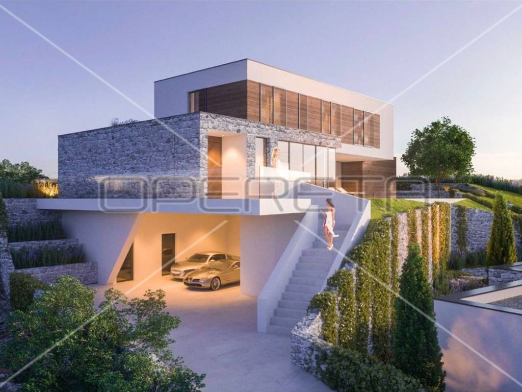 This modern three-story villa is situated on a hill, offering a mesmerizing view of the sea, islands, and Tribunj. This impressive property, currently in the final stages of construction, provides the perfect blend of luxury, functionality, and Mediterranean charm.