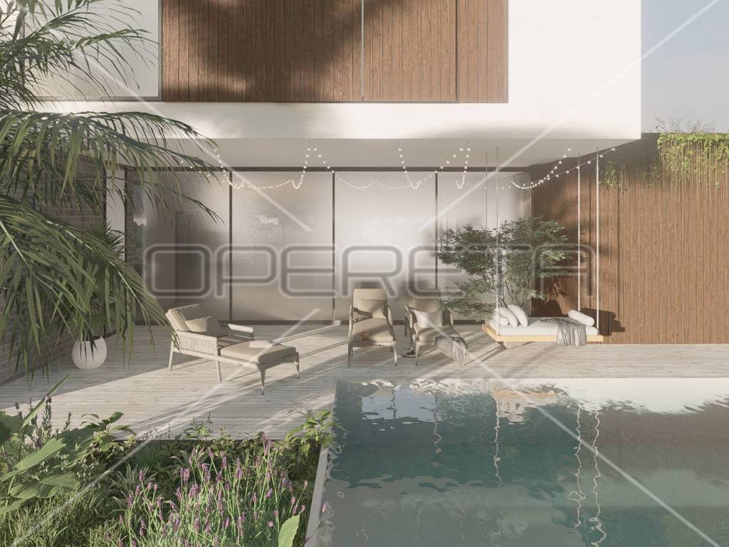 Access to a large terrace with a pool, perfect for relaxation and enjoying the view